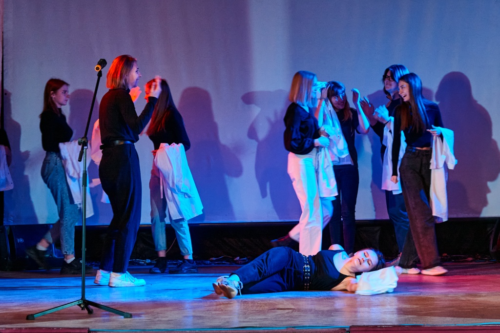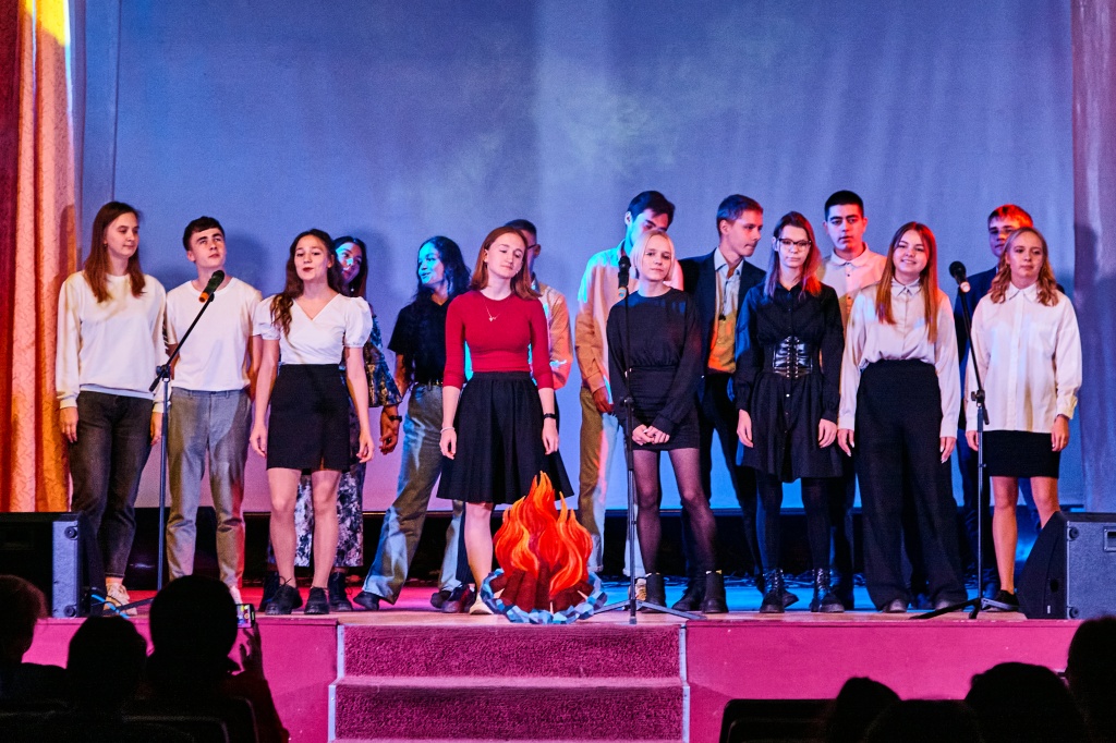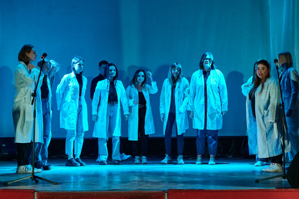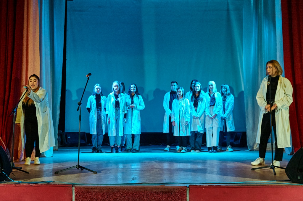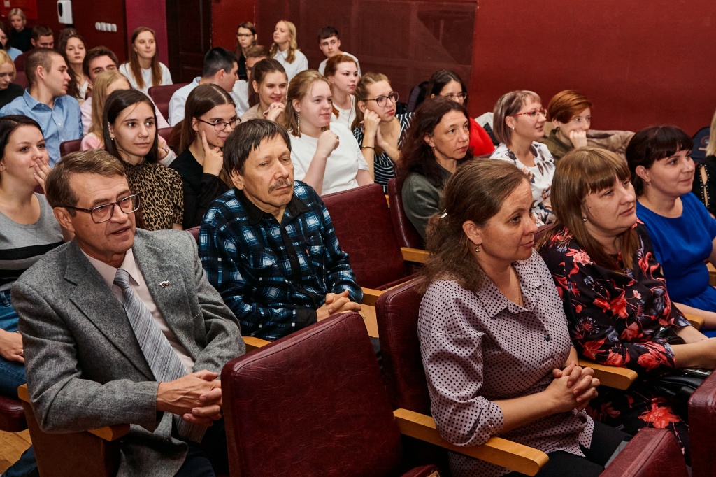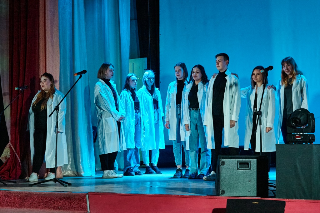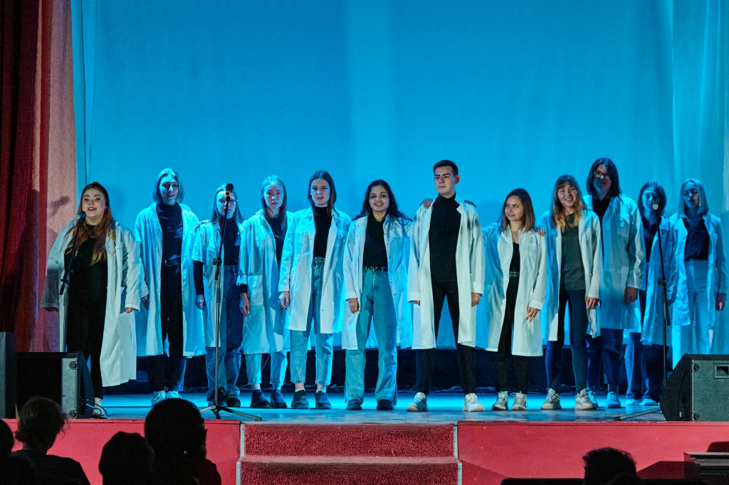 В этом году актовый зал был полный. Каждая группа в своем выступлении постаралась отобразить специфику направления обучения. Студенты направления биология-экология поздравили песней. Математики-информатики отправились вместе с педагогами в царство ФЕМИ. А группа Нт-101о ИУЦ инсценировала мудрую притчу о том, что наиболее ценно в работе любого учителя. В заключение концерта студентка Нт-201о ЕДО С. Шосман порадовала гимном Учителя.