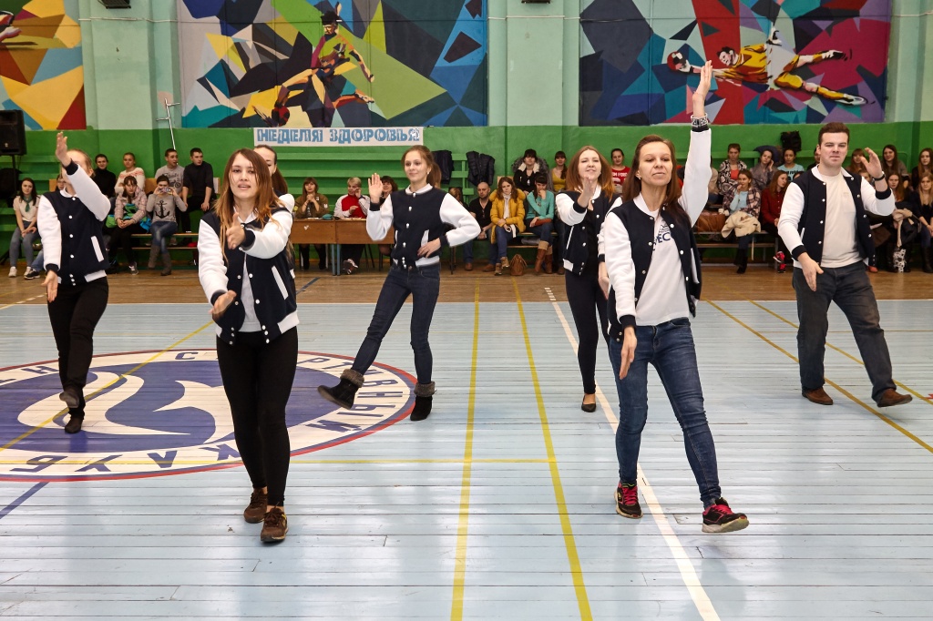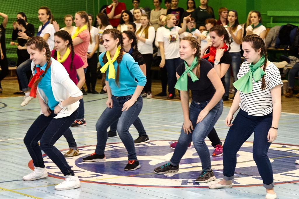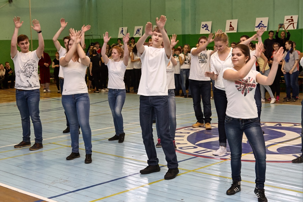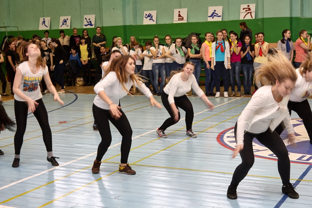 Наш институт был представлен шестью командами от каждого факультета. Все участники выполняли свой танцевальный номер, выступления получились очень красочными и яркими. Развернулась нешуточная борьба между коллективами.