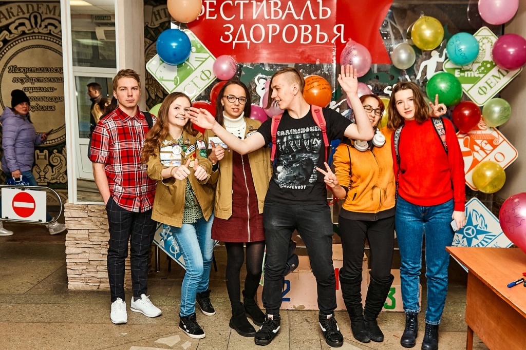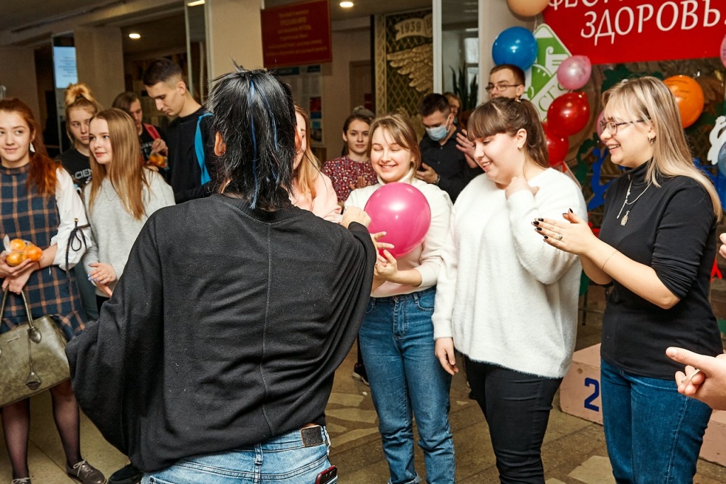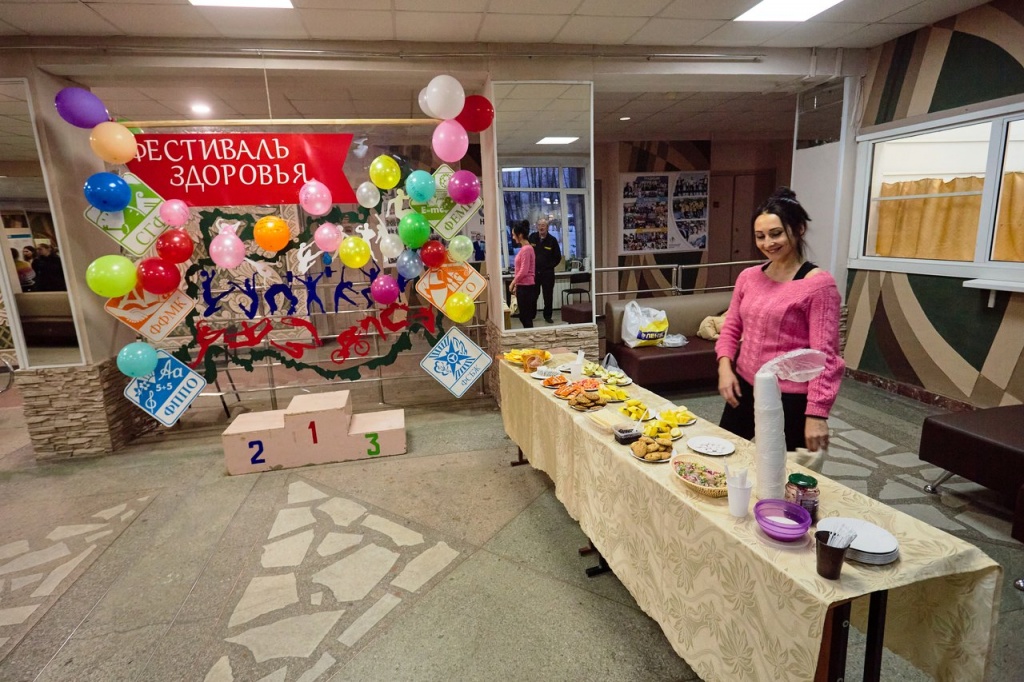 Пока участники игры выполняли поставленные задачи, директором и председателем ССК НТГСПИ была организована акция «Пожелай здоровья другу!», по окончании которой баннер Недели Здоровья был украшен воздушными шарами, подписанными студентами с наилучшими пожеланиями своим друзьям. Среда стала заключительным днем Недели Здоровья. По окончании учебного дня студенты были приглашены принять участие в традиционном оздоровительном пробеге «Бегом к здоровью!» Маршрут проходил по улице Красногвардейской до ГДДЮТ и обратно – к главной площади НТГСПИ. Яркий и красочный забег с мелькающими то тут, то там флагами факультетов и Спортивного Клуба сопровождался улыбками и смехом студентов. По окончании забега в холле первого этажа студенты могли поучаствовать в уже знакомой нам акции «Стол Здоровья» и согреться горячим чаем. За все три дня в мероприятиях приняло участие более 70 человек, а это значит, что Неделя Здоровья прошла успешно и теперь наши студенты точно знают, что такое здоровый и активный образ жизни!