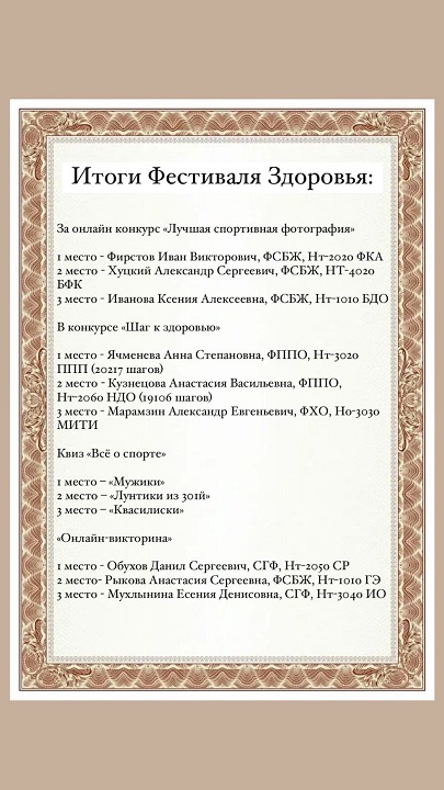 8 декабря проходил онлайн-конкурс «Лучшая спортивная фотография». Ребята должны были неординарно подойти к задаче и поделиться не только спортивной, но и креативной фотографией. Это мероприятие было также примечательно и тем, что его итоги подводились педагогическим составом НТГСПИ.