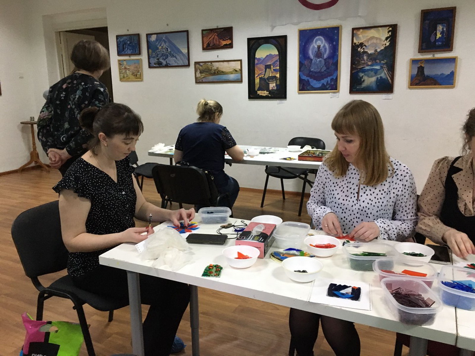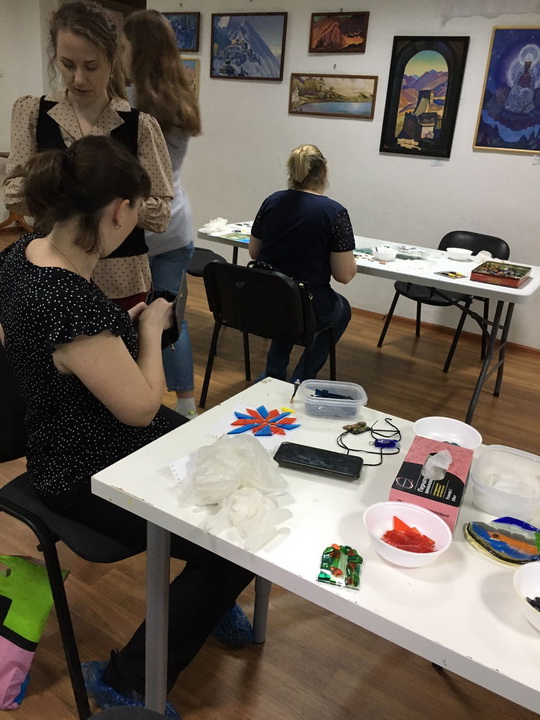 12 мая 2022 г. в рамках сотрудничества с НТМОО «Центр общественных инициатив» студенты 2 курса направления «Социальная работа» посетили мастер-класс по арт-терапии в технике фьюзинг, который провела руководитель Центра Татьяна Александровна Камешкова. Это уже не первый мастер-класс, который посетили студенты нашего факультета как дневной, так и заочной формы обучения. Фьюзинг – специальная технология запекания стекла и обжиг изделий в муфельной печи. Технология фьюзинг позволяет работать с различными категориями клиентов. В частности в рамках проекта «ЕВРАЗ – детям» Татьяна Александровна работает с детьми с ограниченными возможностями. Арт-терапия требует формирования профессиональных навыков и их отработки с учетом специфических особенностей клиента.