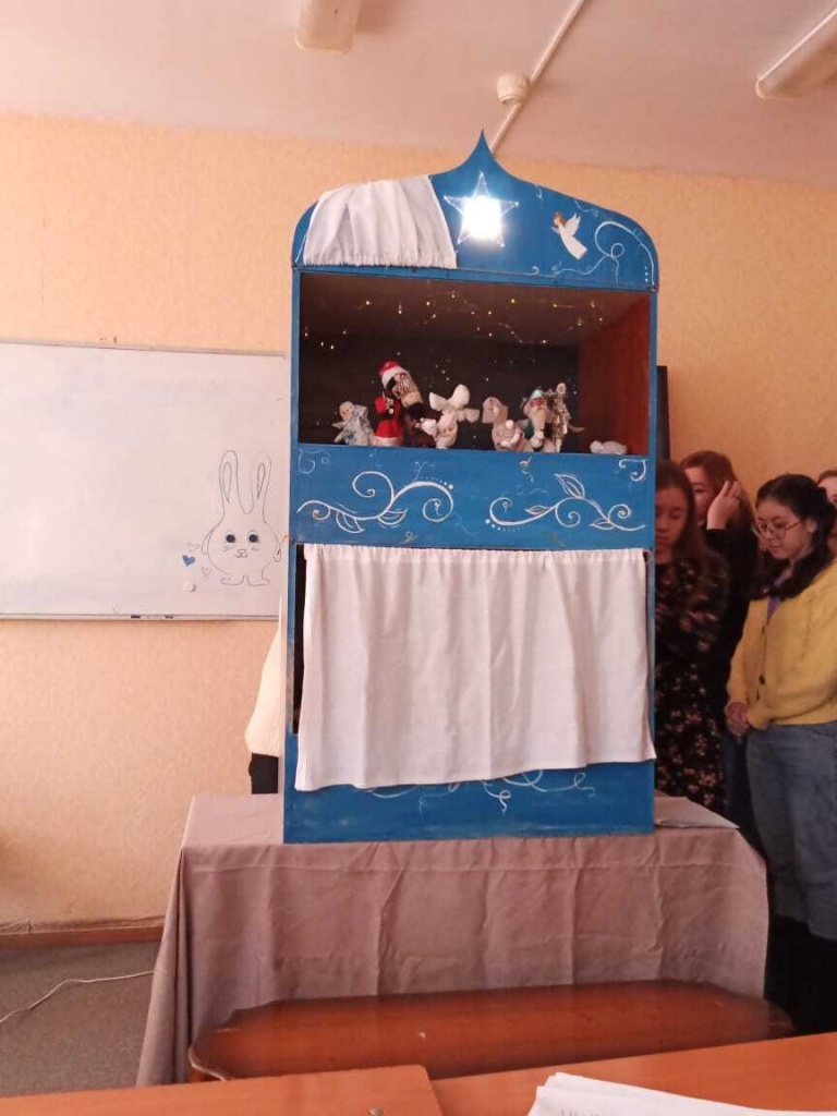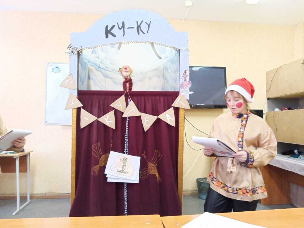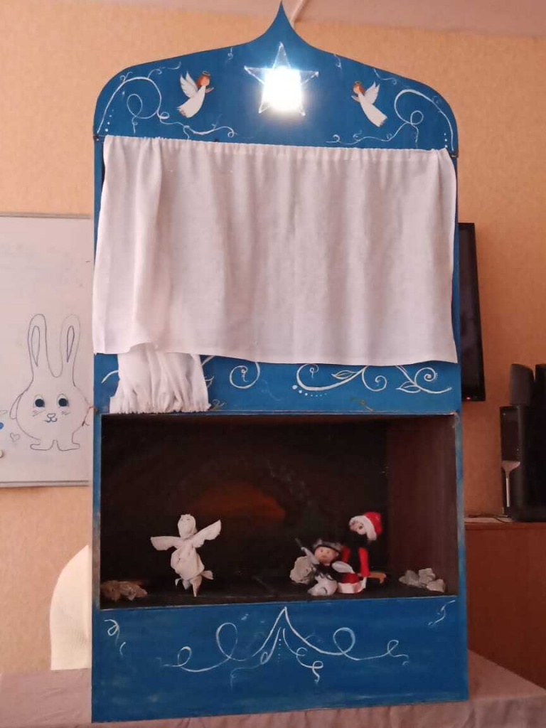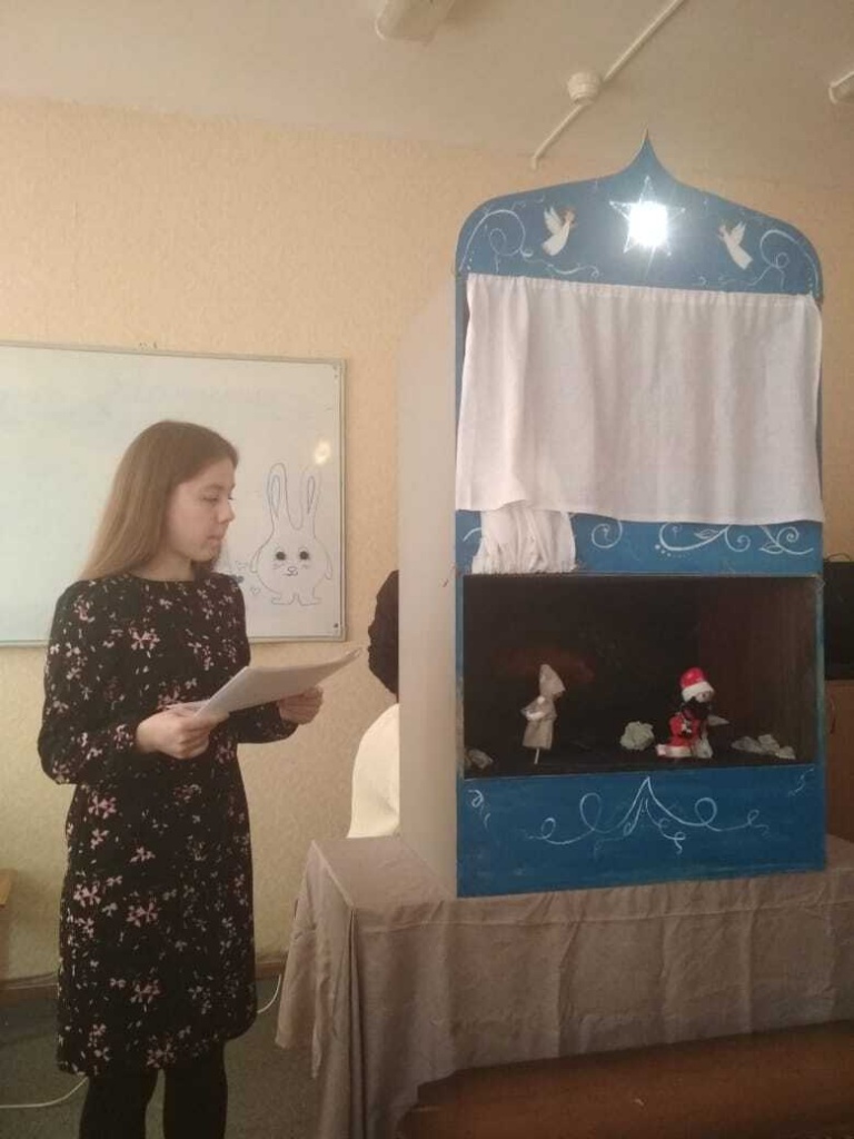 Вертеп и театр Петрушки – знаменитые театральные постановки – были старательно созданы ребятами на потеху зрителям! Отличительная особенность этих фольклорных театров – их «кукольность». Актерами в них являются сшитые куклы, которые «живут» в самодельной деревянной сцене и рассказывают свои истории. Так, вертеп повествует нам о рождении Иисуса Христа в Вифлеемской пещере (в старославянском языке «вертеп» – это пещера, откуда и пошло название театра). Театральное действие изображало радость по поводу рождения Спасителя, поклонение ему, историю чудесного спасения младенца Иисуса от царя Ирода и наказание жестокого правителя. Ребятам удалось воссоздать необычайно трогательную библейскую легенду, передать драматизм и вместе с тем уютную атмосферу рождественской истории.