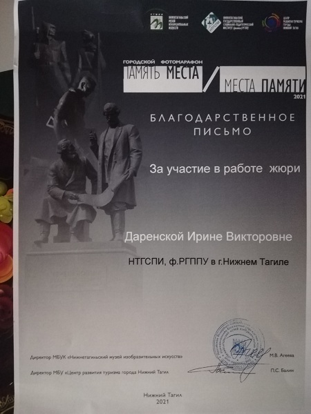 18 апреля 2021 г. в Нижнетагильском музее изобразительных искусств состоялось подведение итогов городского фотомарафона «Память места и места памяти», организаторами которого стали Нижнетагильский музей изобразительных искусств, филиал РГППУ в г. Н. Тагиле и Центр развития туризма г. Н. Тагила.