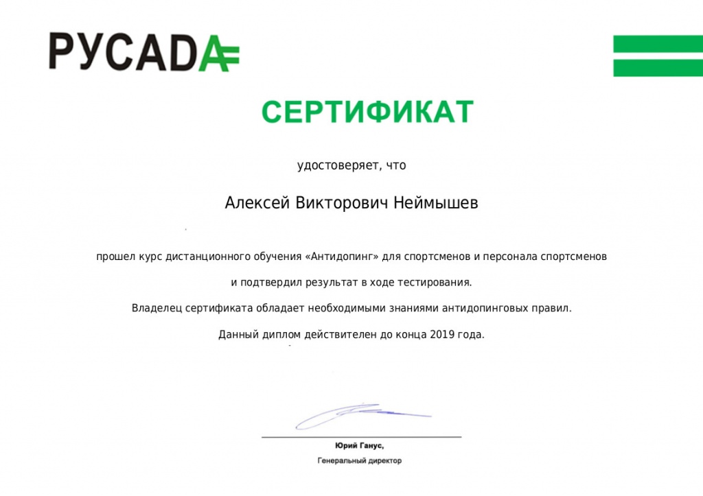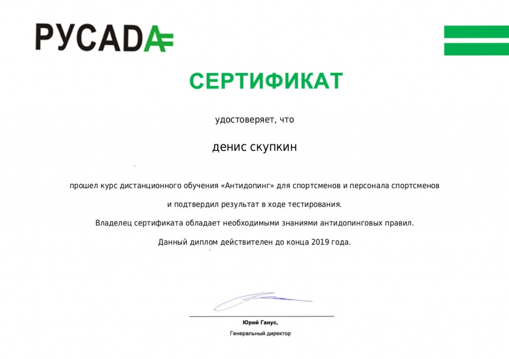 Начиная с 2018 г. согласно требованиям WADA (всемирное антидопинговое агентство) для участия в чемпионатах и первенствах России, Европы и Мира все спортсмены и тренерский состав обязаны до начала соревнований пройти обязательные образовательные антидопинговые курсы на официальном сайте РУСАДА. Профессорско-преподавательский состав ФСБЖ приступил к выполнению требований РУСАДА. Старший преподаватель Д. А. Скупкин и декан ФСБЖ А. В. Неймышев в числе первых успешно прошли курсы и получили сертификат соответствия.