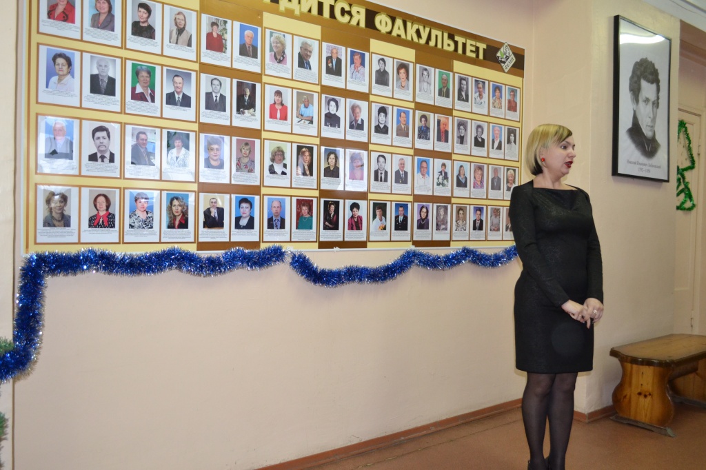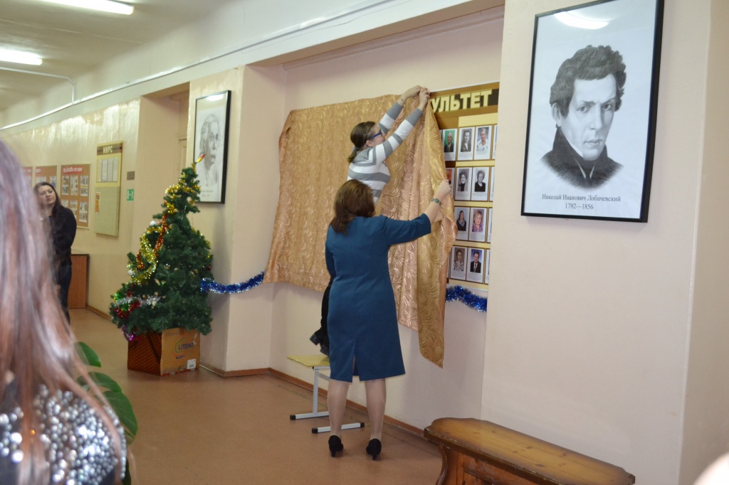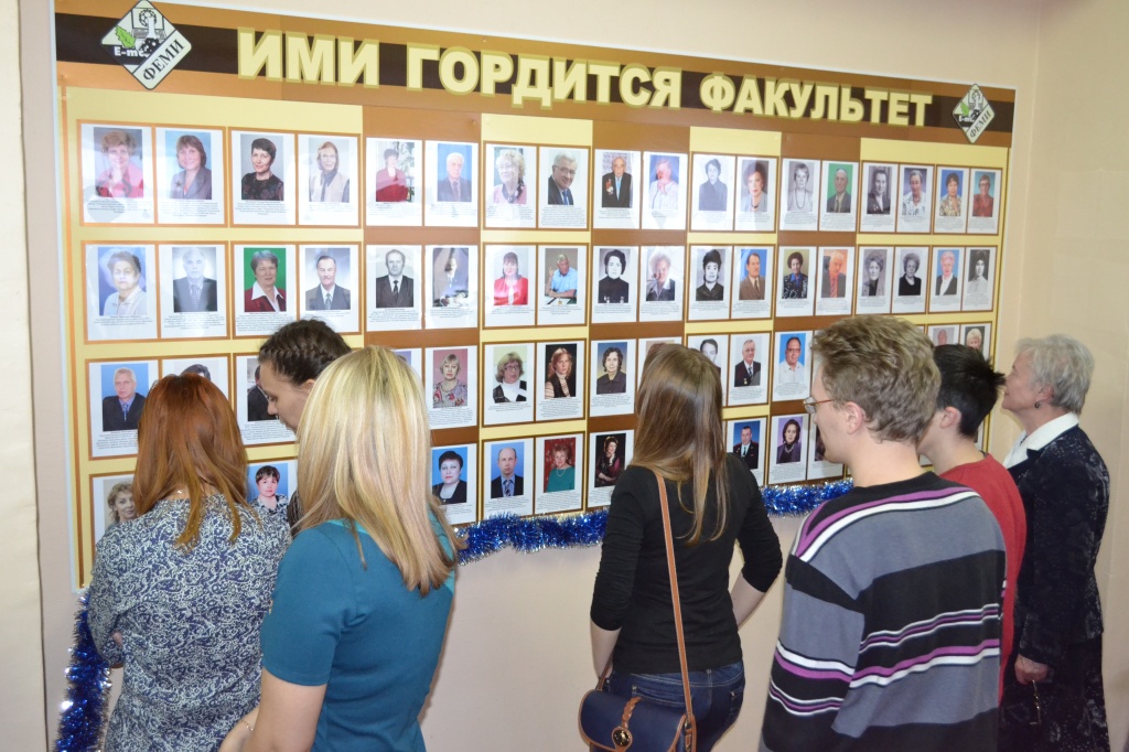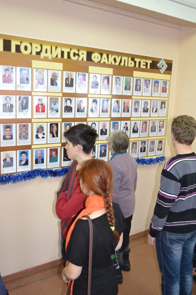 На стенде представлена информация о тех, кем по праву гордится факультет естествознания, математики и информатики, истоки которого уходят в далекие 1939 и 1948 гг. (когда был организован физико-математический факульт и открылось естественно-географическое отделение, давшее начало химико-биологическому факультету).