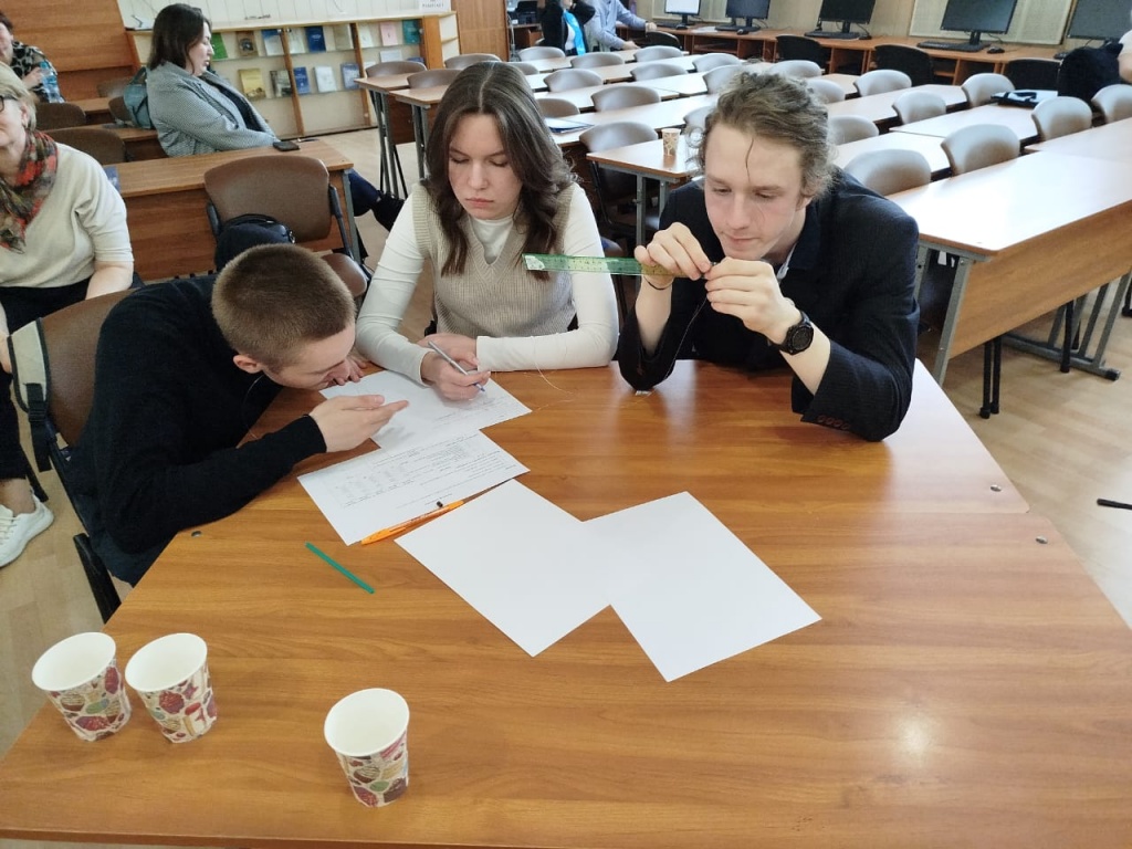 В экспериментальном туре участники олимпиады попробовали свои силы в научно-исследовательской деятельности. Им предстояло решить ряд нетривиальных задач: при наличии только одной линейки в качестве измерительного прибора – измерить длину и диаметр проволоки, найти ее массу и плотность, определить высоту стены в читальном зале. Кроме линейки команды имели в наличии саму проволоку, коктейльную трубочку, картонку, грузик известной массы (2 грамма). Имея такой набор инвентаря, команды должны были разработать схему экспериментальной установки, описать основные этапы работы и провести физический эксперимент с элементами исследовательской деятельности. Не все команды смогли справиться со всеми заданиями, кто-то отметил, что было недостаточно времени, кто-то нашел способ решения, который оказался неправильным. Некоторые команды поняли идею исследовательской задачи, но неверно выполнили расчеты или же воспользовались подсказками ведущих, применение которых уменьшило их сумму баллов. Но были и такие команды, которые справились с заданиями и без подсказок.