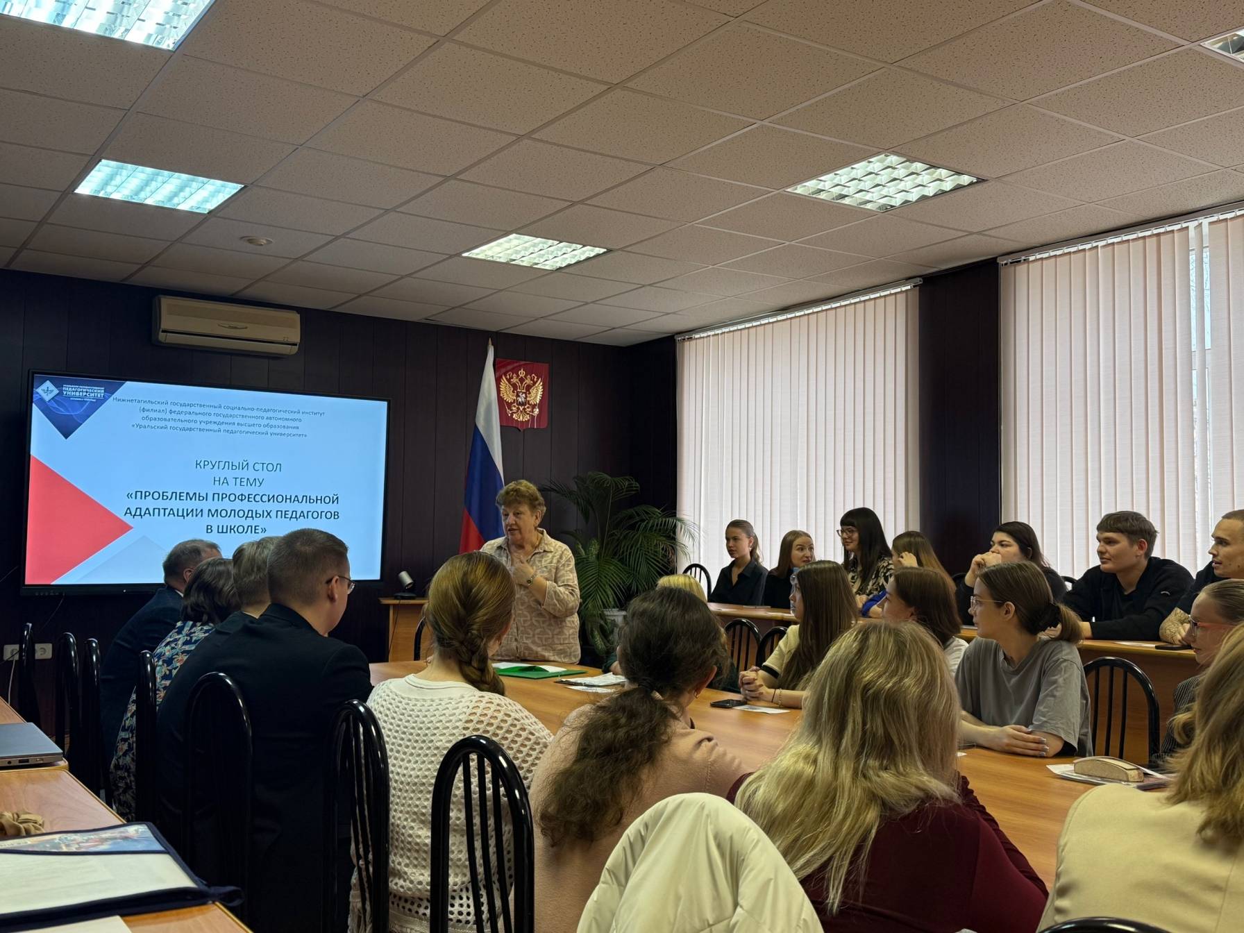 Круглый стол по проблемам профессиональной адаптации молодых педагогов в школе вызвал повышенный интерес. В динамичной и содержательной дискуссии под руководством доцента кафедры социальной работы, управления и права И. Ж. Калашникова приняли участие студенты нашего вуза, а также приглашенные гости – педагог МАОУ СОШ № 69 Валентина Сергеевна Шипунова, бывший директор этой школы, чей стаж работы в качестве руководителя составил более 30 лет, и педагог-психолог этой школы Ольга Викторовна Галынина. В ходе живого общения были затронуты не только вопросы профессиональной адаптации молодых педагогов в школе, но и трудности эмоционального и физиологического характера, с которыми сталкиваются как молодые, так и опытные учителя. Рекомендации, данные опытными педагогами, и их искренние ответы на вопросы студентов сделали атмосферу мероприятия привлекательной и мотивирующей к профессиональному становлению в качестве успешного педагога.