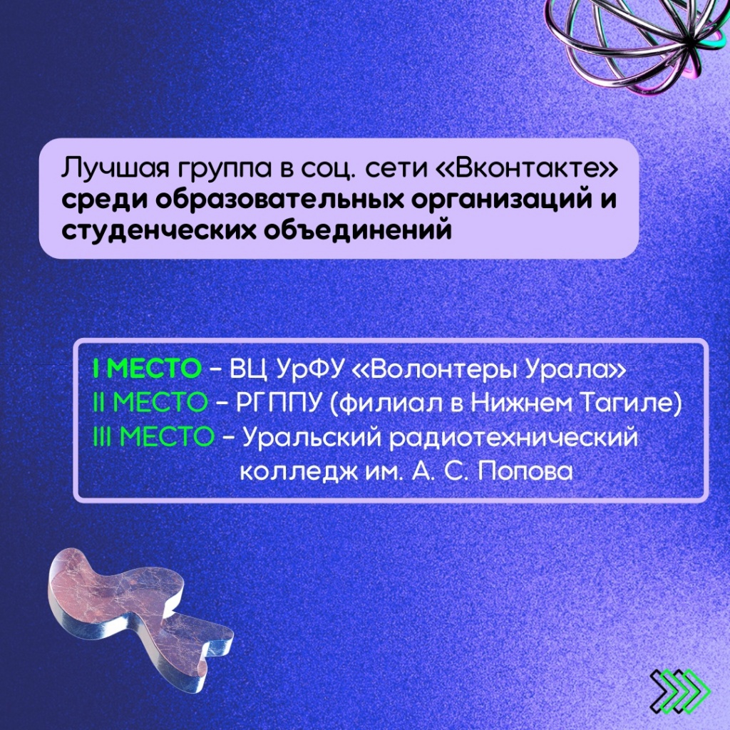 Группа в социальной сети ВКонтакте Объединенного совета обучающихся филиала РГППУ в г. Нижний Тагил заняла почетное II место в номинации «Лучшая группа в социальной сети ВКонтакте среди образовательных организаций и объединений.