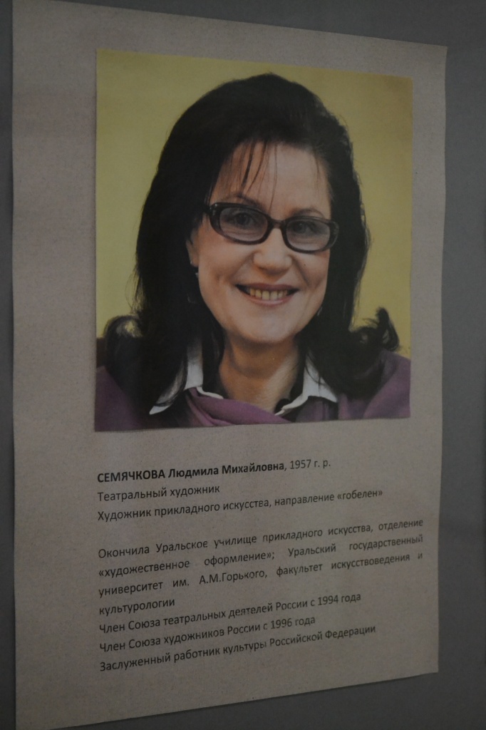 22 октября 2015 г. состоялась экскурсия по выставке Людмилы Семячковой "...и под защитой Мельпомены я сочиняю свой спектакль".