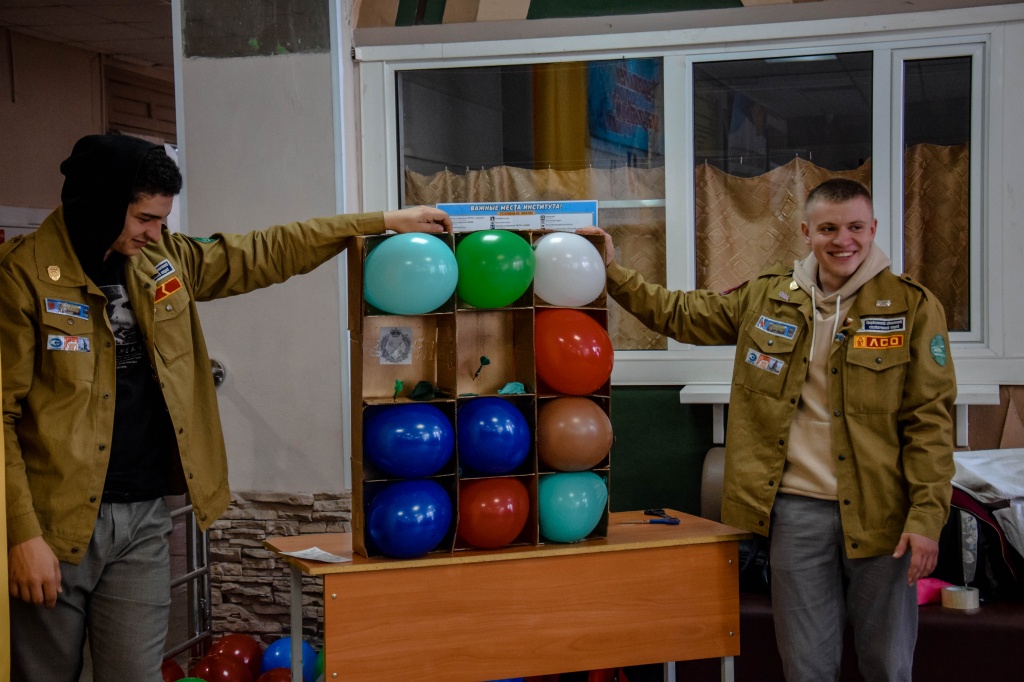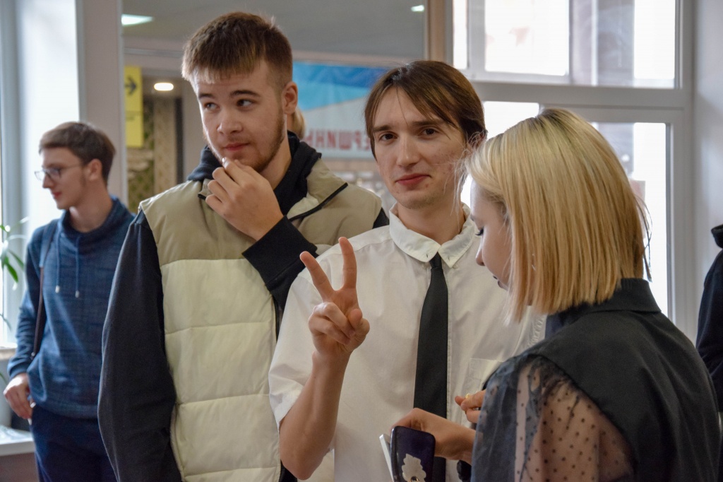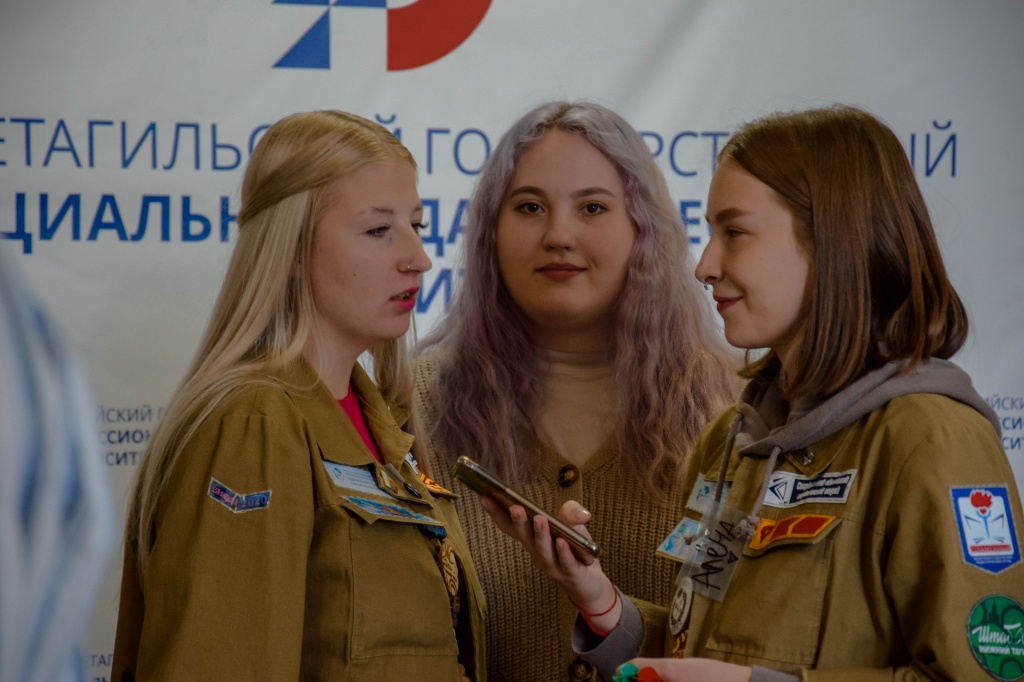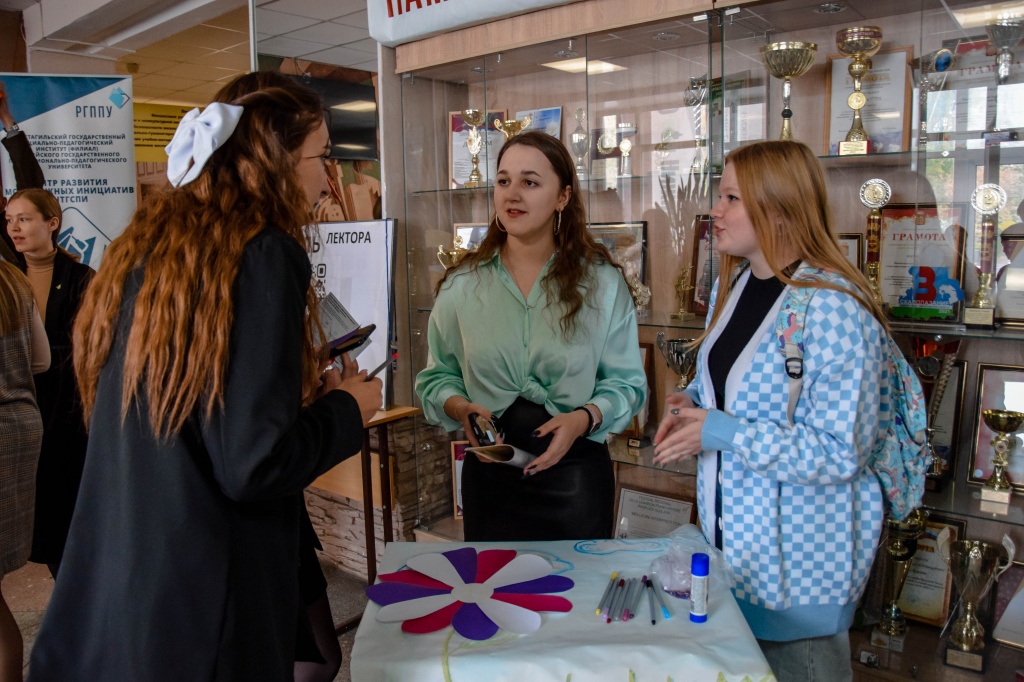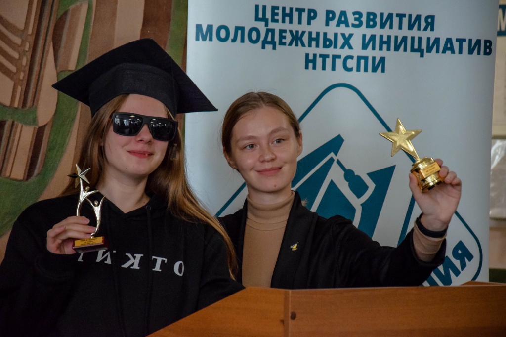 Студенческое научное объединение «Pro_Знание» организовало интересный интерактив для студентов НТГСПИ. Был показан ознакомительный ролик об объединении, ребята рассказали о своей работе, а также выдали карточки-настроения и карточки личных проектов, которые в дальнейшем могут стать брендом или грантом. Также они организовали для студентов фотозону, где любой желающий мог примерить на себя «роль лектора» и сфотографироваться либо со статуэтками, либо в мантии и в квадратной академической шапочке, даже был импровизированный красный диплом!