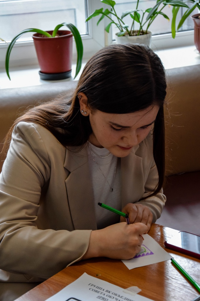 Одно из самых патриотичных объединений нашего филиала – студенческое объединение «Pro_патриот». В этом году они придумали оригинальную творческую концепцию, которая позволила отразить патриотизм наших студентов. Любой желающий, подошедший к столу «Pro_патриот», мог нарисовать на листочке любую ассоциацию со своим государством в виде эмблемы или герба. В итоге получились очень интересные и патриотичные рисунки, лозунги, эмблемы и гербы.