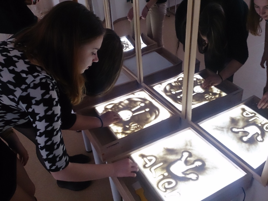 Для учащихся начальной школы была предложена игра-квест «Путешествие на другую планету». В холле здания царила творческая атмосфера, ученики погрузились в мир своих эмоций и яркими красками представили себя в виде смайликов. Резиденты с другой планеты (это были студенты) помогали ребятам в выполнении заданий.