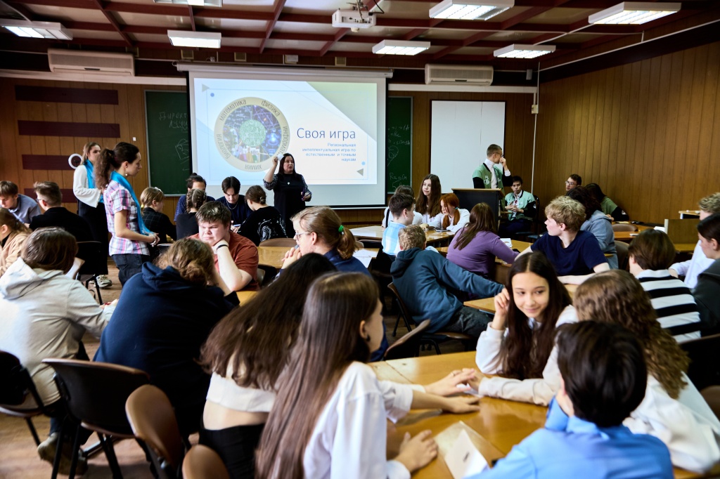 3 апреля в нашем институте уже во второй раз прошла интеллектуальная игра «Своя игра по естественным и точным наукам». Мероприятие проводилось для школьников и студентов СПО 1–2 курсов нашего города и области.