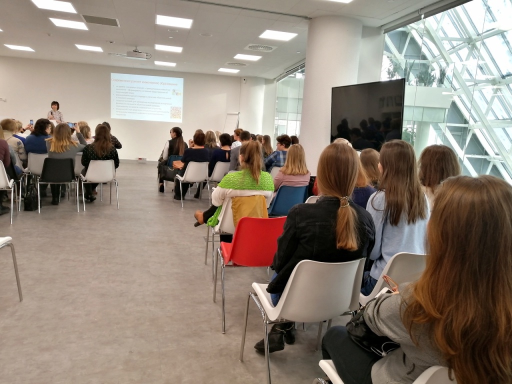 1 ноября студенты четвёртого и пятого курсов факультета психолого-педагогического образования вместе с деканом факультета Мариной Валентиновной Ломаевой и доцентом кафедры психологии и педагогики дошкольного и начального образования Юлией Валерьевной Скоробогатовой стали участниками семинара «Современные формы раннего инженерного образования для высокотехнологичных производств и сферы IT на основе цифровых технологий» в пространстве коллективной работы «Точка кипения – Екатеринбург». Гостям мероприятия была предложена презентация инновационных педагогических практик в рамках реализации губернаторской программы «Уральская инженерная школа». Семинар был направлен на знакомство педагогов с инновационными педагогическими практиками раннего инженерного образования детей на основе ИКТ.