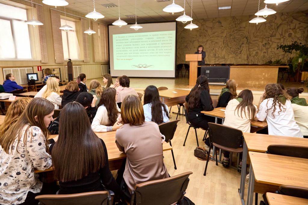 10 октября творческой группой студентов 5 курса социально-гуманитарного факультета для учащихся педагогических классов была проведена интеллектуальная игра «О педагогике и педагогах», в которой приняли участие команды из трех школ – МБОУ СОШ № 20, № 75/42, № 44. В состав команд входили как учащиеся, так и педагоги. Игра была приурочена к празднованию Дня учителя, поэтому и разговор в ней шел о школе и работе педагогов.