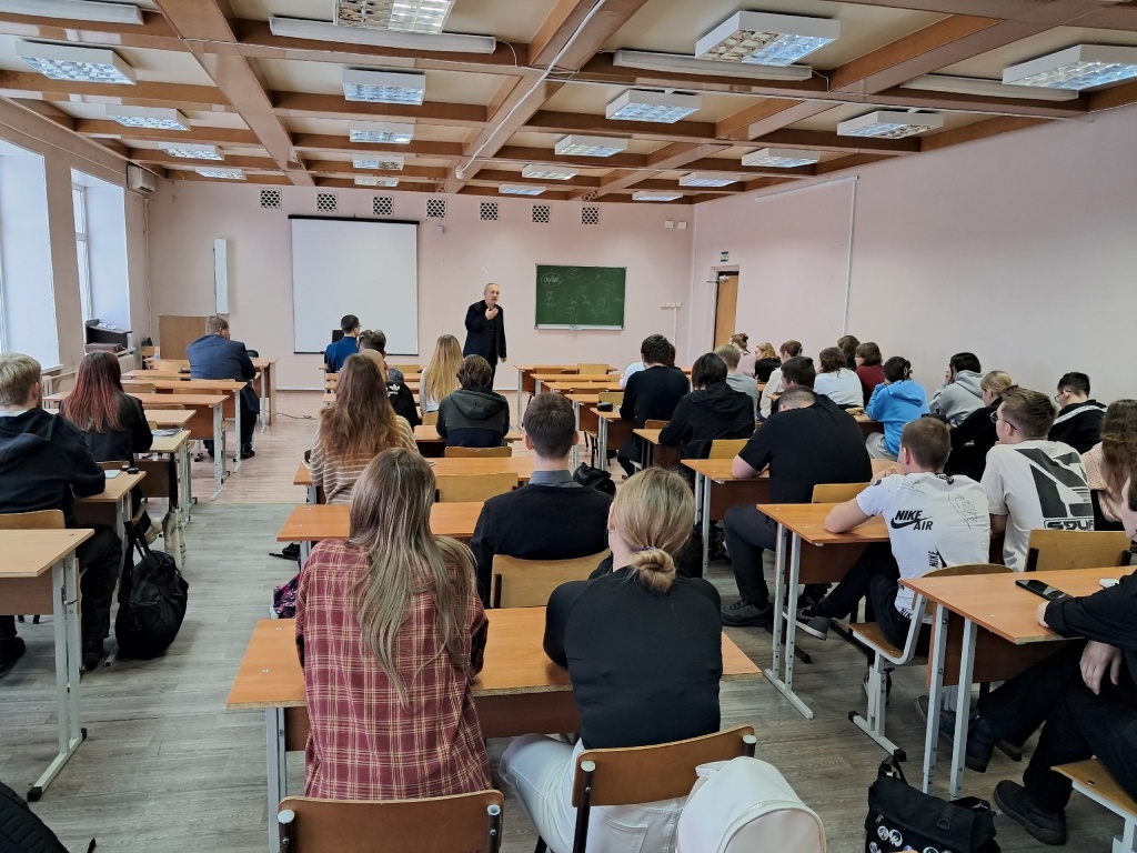 Со студентами первого курса ФЕМИ А. Л. Коновалов обсудил проблемы правопорядка в государстве, а также рассказал о деятельности пенитенциарной системы, затронув историю своего учреждения и специфику службы людей, которые занимаются охранной деятельностью и перевоспитанием осужденных.