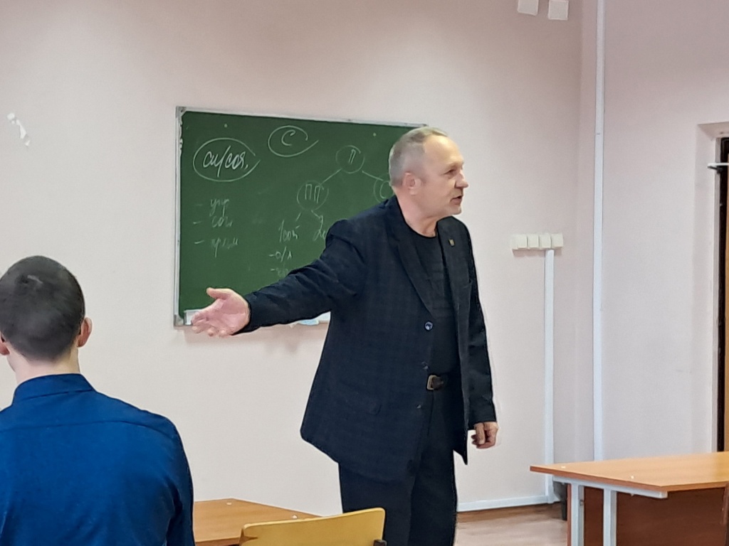 Со студентами пятого курса СГФ группы 501 ПЭ он освятил некоторые проблемы профессионального общения сотрудников зоны, так как стресс тюрьмы всегда негативно влияет на любого человека, поэтому сотрудникам надо быть втройне активнее и готовыми противостоять любым стрессам. Крылатое выражение Петра Первого об этом звучит так: «Тюрьма есть ремесло окаянное, и для скорбного дела сего зело истребны люди твёрдые, добрые и весёлые». Именно в этом ключе были рассказаны разные истории из профессиональной жизни самого гостя и его коллег, которые могут быть примером для адекватного реагирования на разные проблемы нашей социальной жизни. Как для курса «Основы российской государственности», так и для курса «Профессиональное общение» такой материал стал иллюстрацией гражданской жизни россиянина.