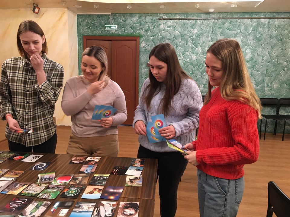 Мастер-класс позволил овладеть несколькими приемами данной технологии, в частности, студенты проработали методику применения ассоциативных фотокарт, направленных на самопознание, самоанализ, корректировку жизненной ситуации клиента и его эмоционального самочувствия.