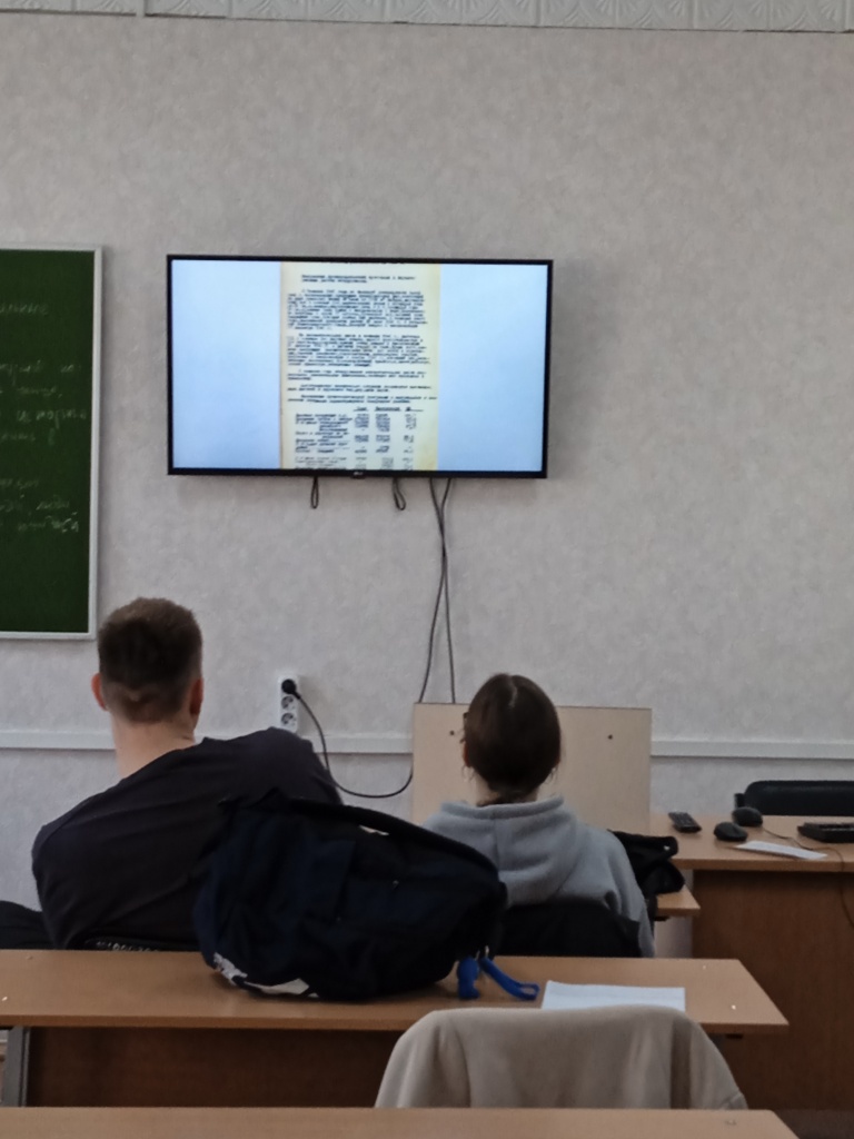 Выставка архивных документов «Тагил ковал в цехах победу» познакомила студентов с комплексом архивных документов о мобилизации тагильчан и формировании промышленного комплекса на территории города Нижнего Тагила в годы Великой Отечественной войны, создании танковой колонны, а также самоотверженном труде тагильчан.