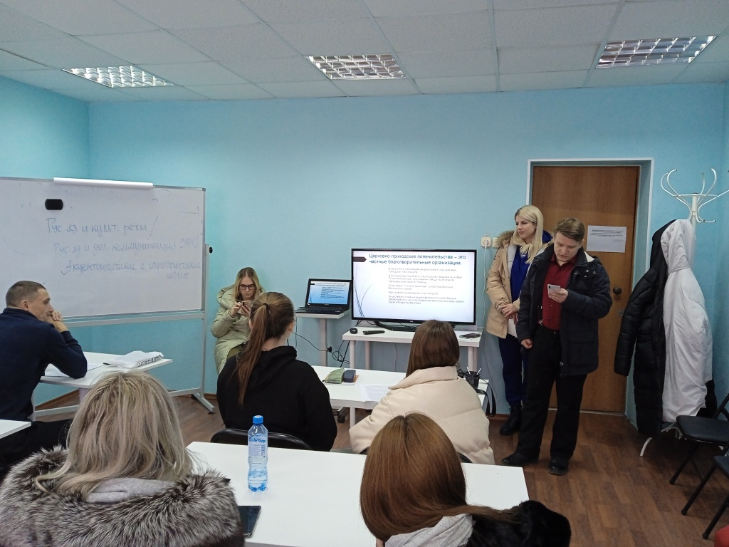 Проект «Педагогический трансфер «Социальное образование»» был представлен 23 ноября на СГФ одним из методов активного обучения круглым столом по теме: «Изучение государственной и частной благотворительности на примере Уральского промышленного региона». Участниками стали студенты СГФ Нт-118 СР под руководством к. ист. н. Н. А. Тарасовой и доцента, к.п.н., Т. Ю. Основиной. Цель организации круглого стола – активизация познавательной деятельности студентов, способствующая закреплению полученных знаний и восполнению недостающих по истории государственной и частной благотворительности на Урале.