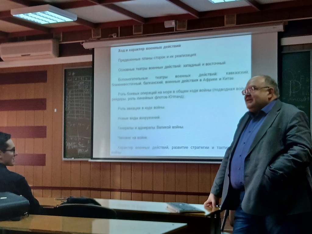 Спикером выступил кандидат исторических наук, доцент кафедры гуманитарных и социально-экономических наук С. А. Потапов, который является экспертом в военной истории.