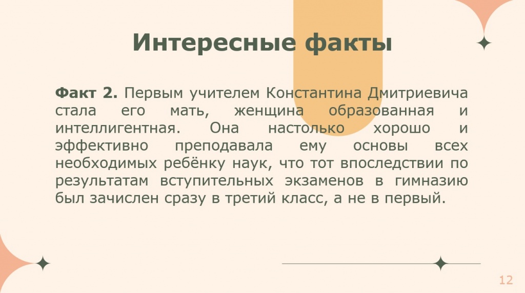 В текущем месяце кафедрой информационных технологий и физико-математического образования совместно со студентами был проведен конкурс мультимедийных презентаций, приуроченный к празднованию Года педагога и наставника (https://www.ntspi.ru/teachers-year/). Участникам предлагалось воспроизвести определенный аспект жизни и творчества педагога и ученого К. Д. Ушинского в формате мультимедийной презентации. Идею, структуру, содержание, оформление презентации студенты должны были определить самостоятельно. В итоге все работы получились очень разноплановые. Часть участников конкурса содержание презентации посвятили биографии К. Д. Ушинского, кто-то сделал особый акцент на семье и детстве ученого. Достаточно много работ освещает деятельность К. Д. Ушинского как педагога, в некоторых сделан обзор его художественных произведений. Авторы поработали и над интерактивностью презентаций – во всех работах организована интересная последовательность изложения материала, кто-то из авторов разработал викторину, популярным оказался вид взаимодействия с аудиторией посредством презентации в формате своей игры.