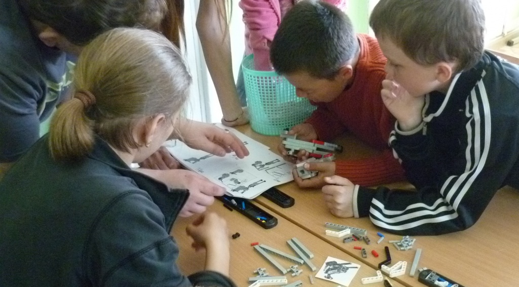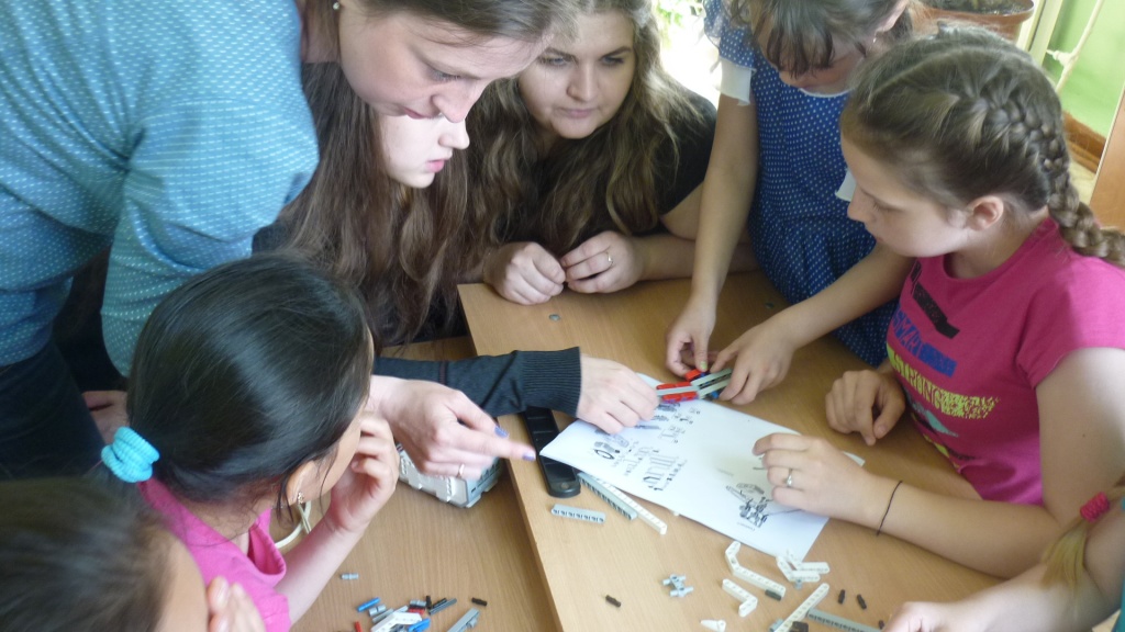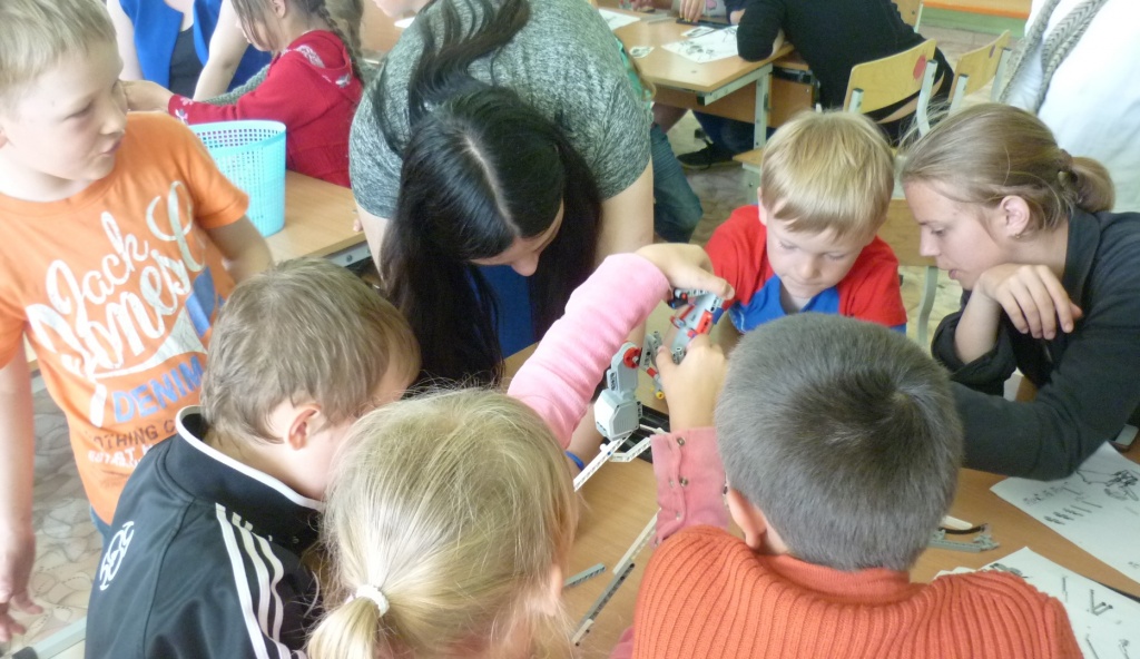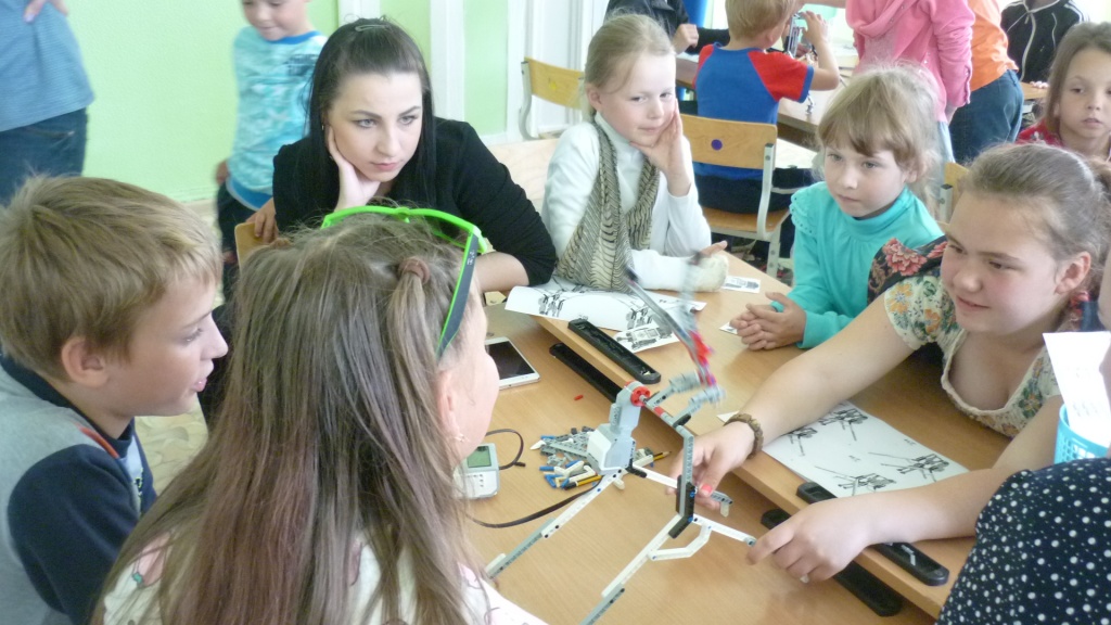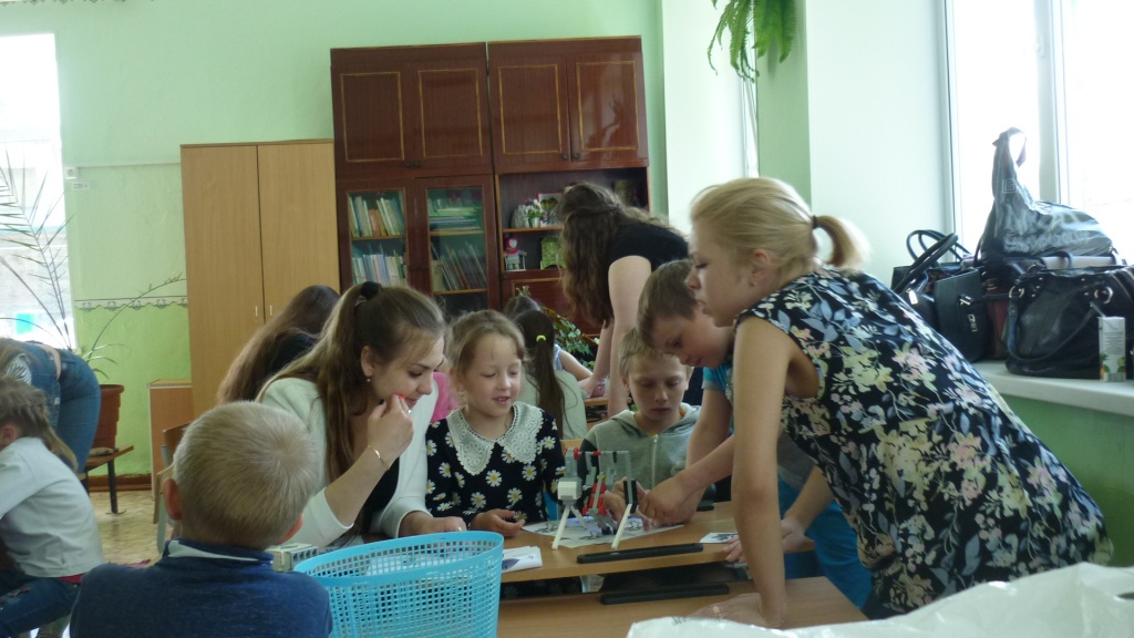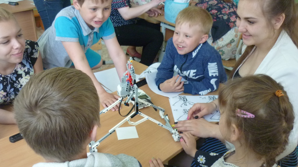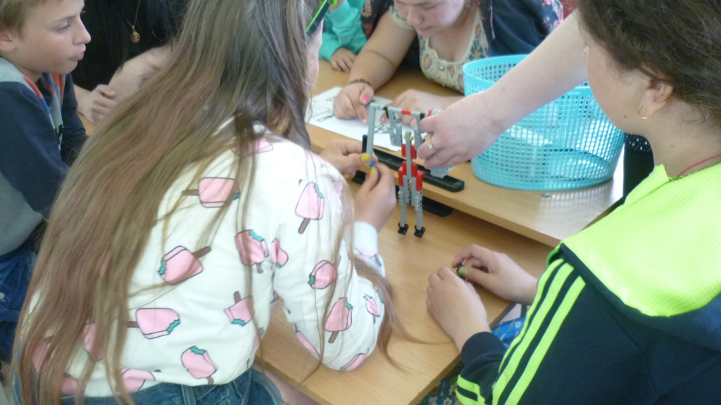 Только после прохождения всех этапов квеста – ребята путешествовали по всей школе – учащимся удалось собрать все части инструкции по сборке робота и приступить к самому интересному действию мастер-класса – конструированию роботов-гимнастов. Студенты выступали в качестве консультантов и помогали детям при затруднениях.