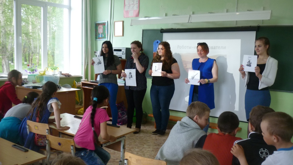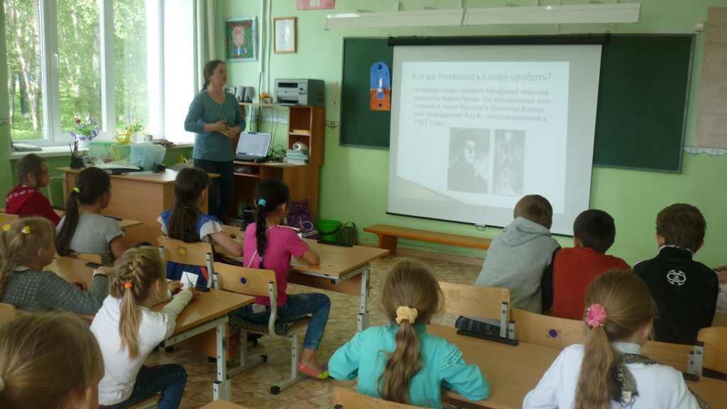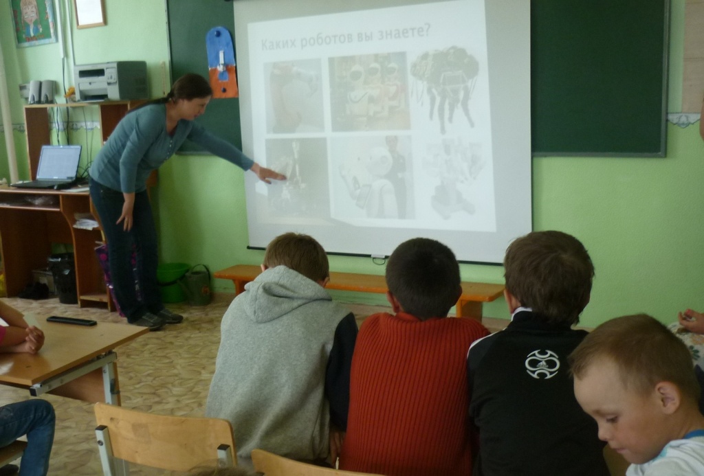 Мероприятие началось с вводного сообщения-презентации о роботах и их истории. Учащиеся активно участвовали в обсуждении: отвечали на вопросы, угадывали роботов по предложенным изображениям. В конце ученики были разбиты на пять команд, и студенты выдали им маршрутные листы.
