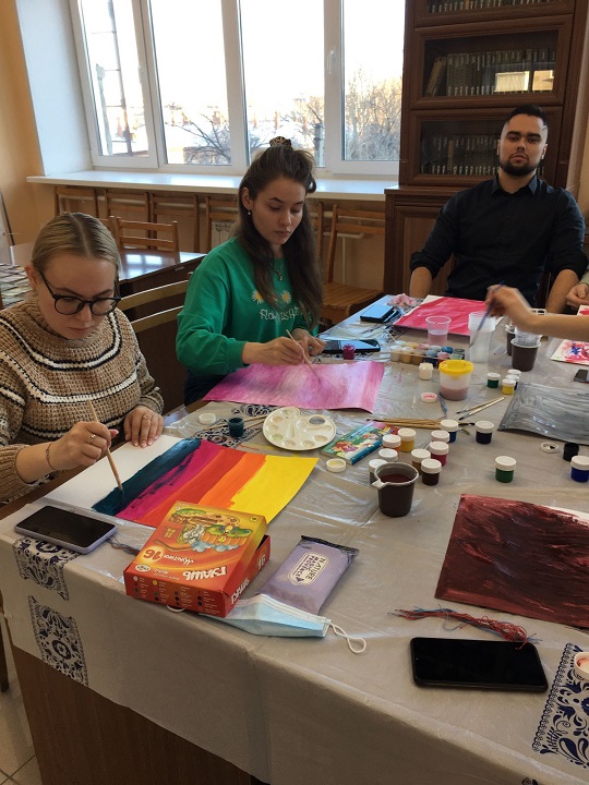 Студенты 3 курса СГФ направления «Управление и предпринимательство в социальной сфере» при изучении дисциплин «Технология социальной работы», «Социальное образование» под руководством доцента кафедры социальной работы, управления и права, канд. ист. наук Н. А. Тарасовой и доцента, канд. пед. наук Т. Ю. Основиной 11 марта 2022 г. прошли мастер-класс по изо-терапии, который провела практикующий психолог, арт-терапевт Анастасия Степанова. Мастер-класс позволил студентам пройти и протестировать на себе технологию изо-терапии в качестве реабилитационного метода, основанного на применении средств искусства.
