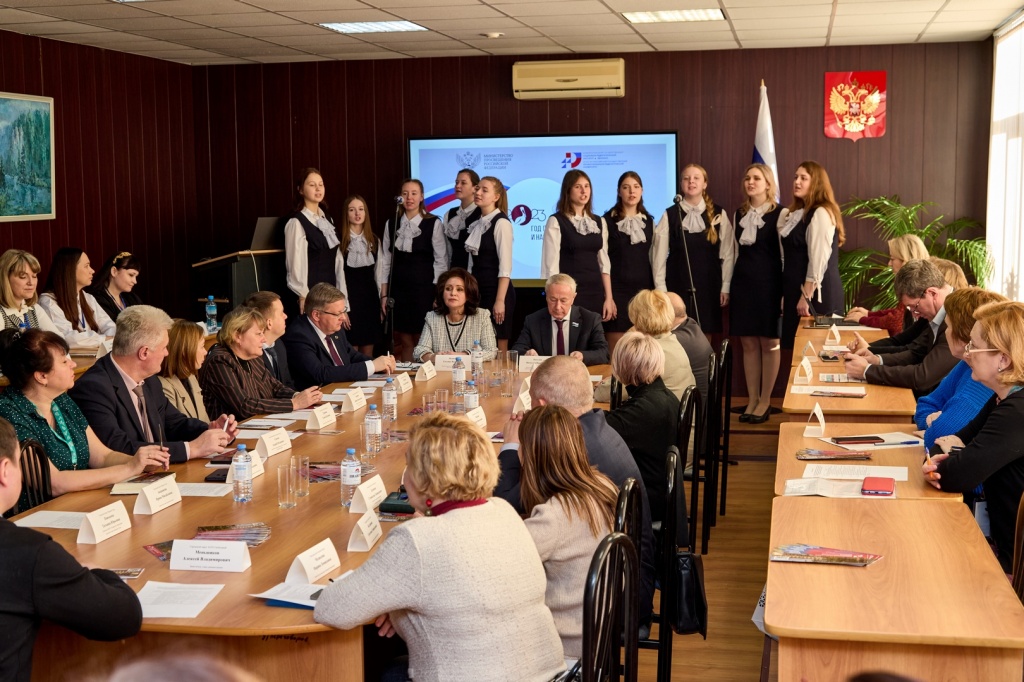 Об особенностях приемной кампании 2024 г. и о внесении изменений в Федеральный закон «Об образовании в Российской Федерации» (в части ст. 56 Целевое обучение) рассказала ответственный секретарь приемной комиссии филиала Екатерина Владимировна Сизоненко. Председатель профсоюзной организации студентов филиала Людмила Михайловна Долгополова осветила актуальный вопрос о мерах социальной поддержки обучающихся, которые предоставляет наш вуз. Начальник отдела научно-исследовательской работы Елена Геннадьевна Харитонова обратила внимание участников совещания на основные направления взаимодействия педагогического вуза и образовательных организаций, предлагаемые современным научным сообществом.
