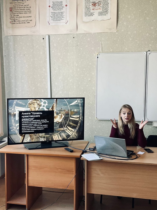7 мая студенты первого курса ФППО группы НТ-106о СПП провели в рамках учебного курса «Социальная психология» семинар по теме «Нравственный выбора человека». Студенты активно включились в обсуждение, разобрали основные понятия по данной теме, привели примеры из художественной литературы и кинематографа.
