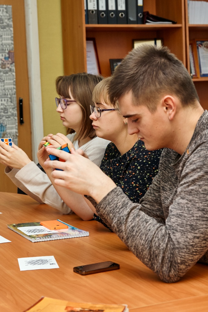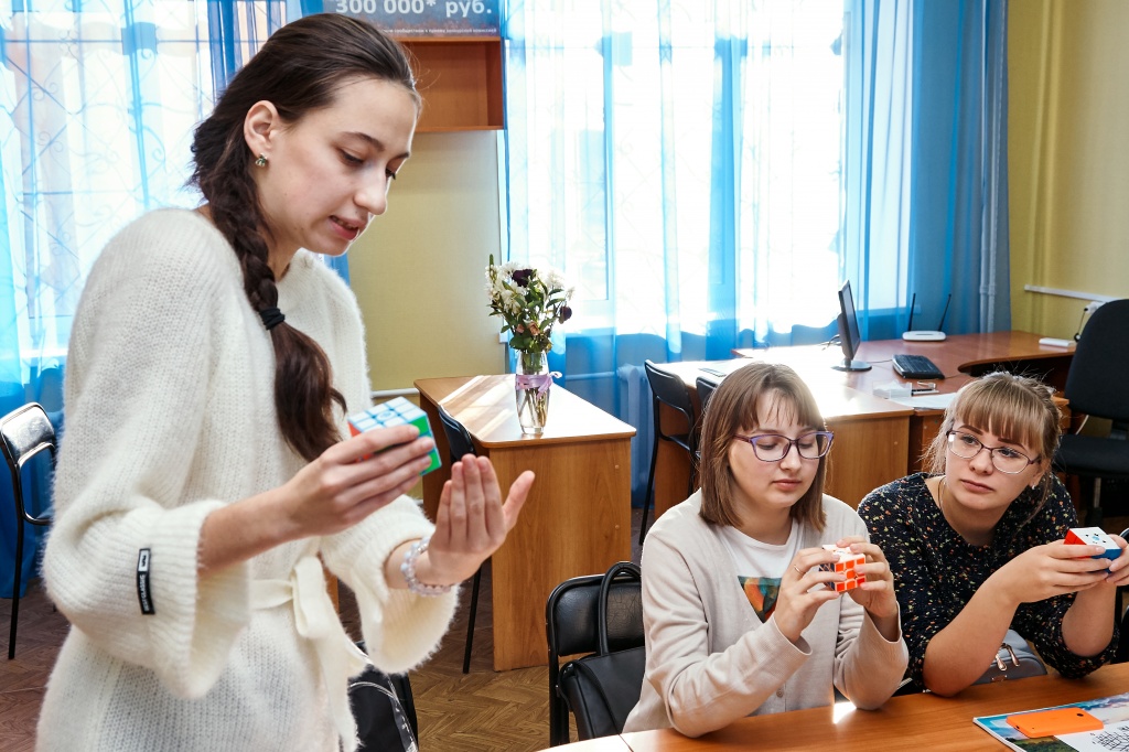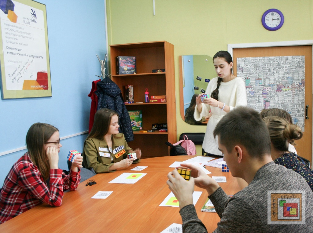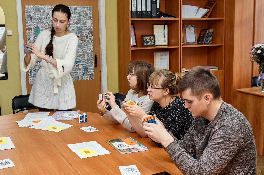 23 октября на базе НТГСПИ в рамках реализации грантового проекта состоялся мастер-класс по сборке кубика Рубика, организаторами которого выступили научно-дискуссионное сообщество «Диалог» и городская школа кубинга «ШКаФ». Самое интересное, что мастер-класс проводился на большой перемене, и это время пролетело не только весело, но и полезно.