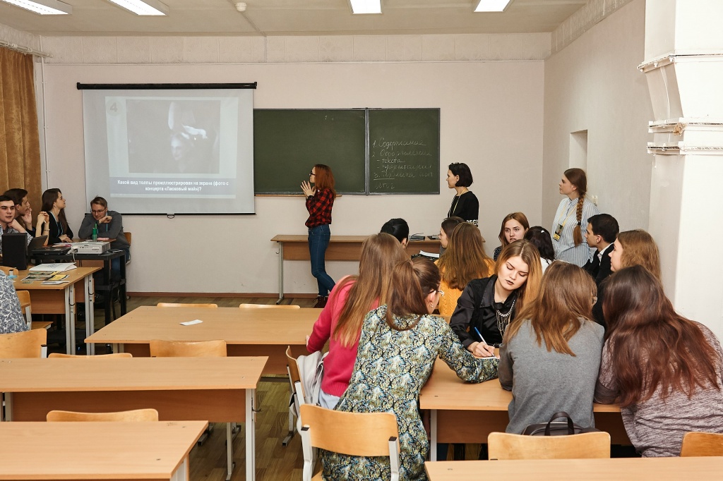 Четвертый тур «Есть идея» был посвящен самым значимым и важным концепциям и теориям в социальной психологии. Не скроем, что именно этот тур вызвал у ребят самые бурные и живые обсуждения, ведь порой ответы на вопросы казались очень спорными и неоднозначными, а у многих вообще была иная точка зрения на концепцию. Но здесь на помощь приходила экспертная комиссия – члены жюри, кстати, тоже студенты, а вот председателем выступила кандидат педагогических наук, доцент М. В. Манакова.