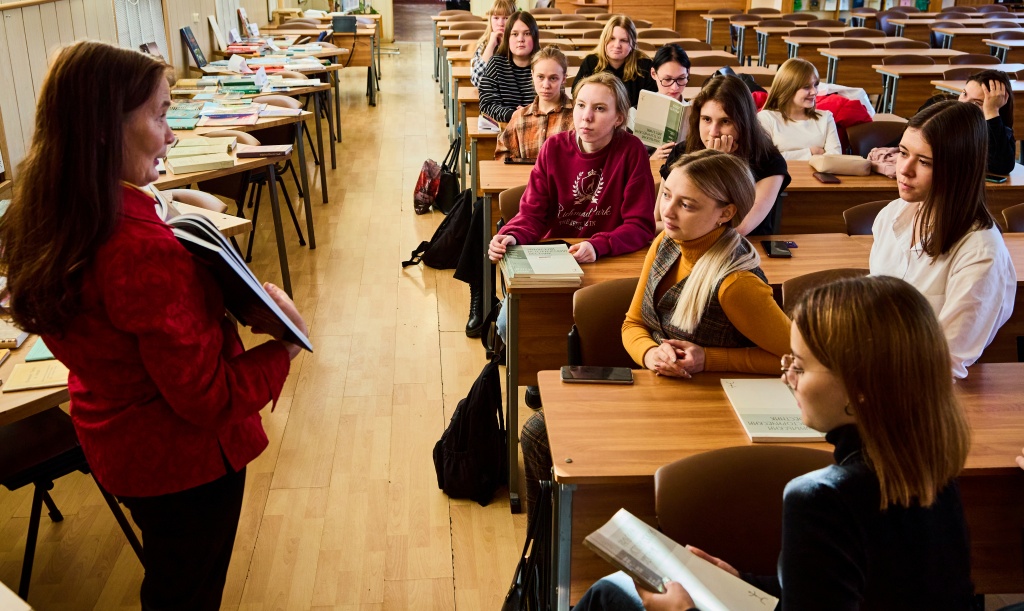 Одними из первых посетили выставку студенты 1 курса ФППО НДО. Преподаватель Ольга Васильевна Рыжкова провела у них урок-консультацию в рамках дисциплины «История России».