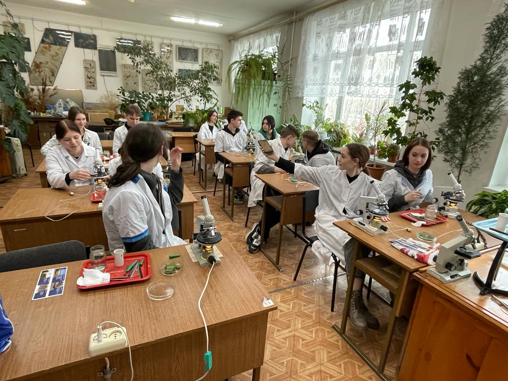 Но потрогать им в лабораториях все-таки кое-что разрешили, когда погрузили в атмосферу лабораторных занятий по ботанике и биохимии. С каким интересом школьники готовили временные микропрепараты, работали с микроскопической техникой, рассматривали кристаллические включения в растительной клетке!