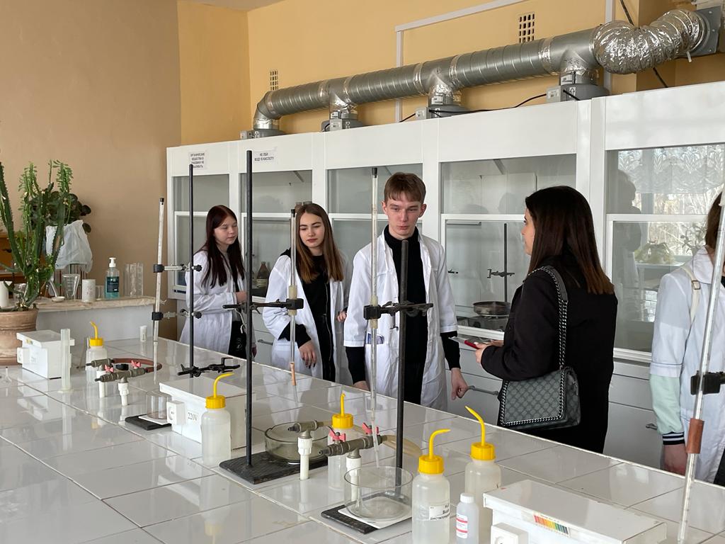 И снова факультет естествознания, математики и информатики открывает двери для будущих абитуриентов. 23 марта в рамках Школы будущего студента «Школьник – абитуриент – студент» наш факультет принял обучающихся 9–11 классов МБОУ СОШ № 55 г. Нижнего Тагила. Примечательно, что школьники профильных биологических классов посетили наш вуз под руководством молодого специалиста, учителя биологии, но одновременно еще и студентки пятого курса направления подготовки 44.03.05 Педагогическое образование, профили «Биология и химия» Айтац Гахрамановны Пашаевой. Это особая гордость факультета – все студенты пятого курса профилей «Биология и химия» и «Математика и информатика» в 2022 г. были трудоустроены в образовательные учреждения Нижнего Тагила и Свердловской области.