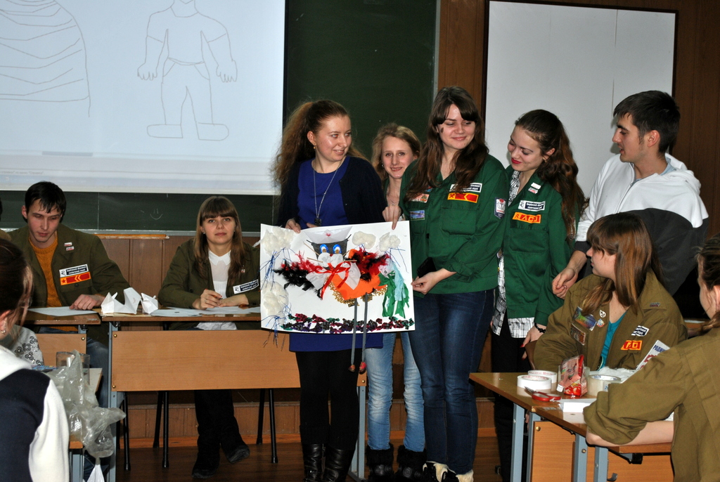 Затем отряды презентовали свои картины: звучали шутки, истории и забавные рассказы о животном. Конкурс закончился награждением победителей и участников. Справедливое жюри в лице Лебедева Максима, Андронова Станислава и Чекмаревой Екатерины оценили работы команд. Самой лучшей из них оказалась картина ССО «Русичи».