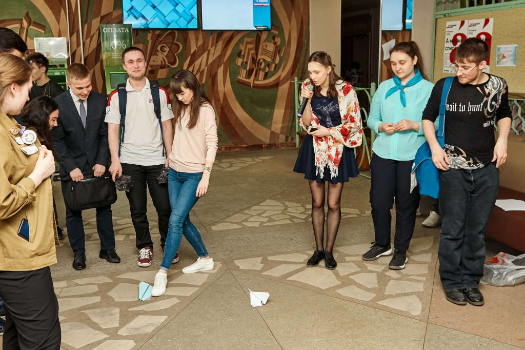 12 апреля в День космонавтики в нашем институте прошел Космический баттл! Ребята показали свое мастерство по изготовлению и запуску самолетиков из бумаги. У них была возможность попробовать свои силы как в командной игре, так и в индивидуальном первенстве. В фойе института развернулась настоящая космическая битва среди 8 команд от факультетов и студенческих отрядов!
