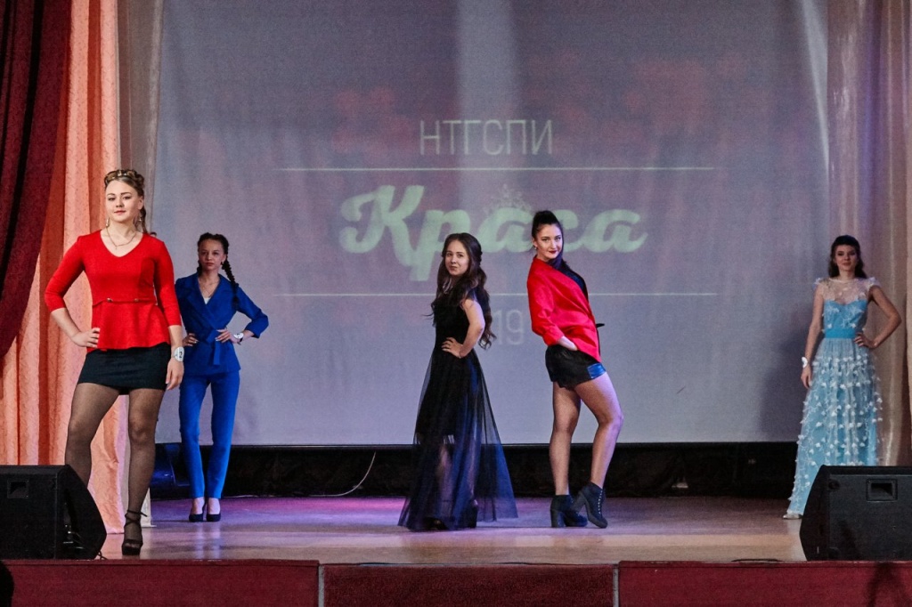 В преддверии Международного женского дня в актовом зале НТГСПИ прошёл конкурс «Краса НТГСПИ – 2019», организованный Управлением воспитательной работы. За первое место боролись 8 прекрасных девушек – Елизавета Байкова (ФСБЖ), Екатерина Лобастова (СГФ), Анастасия Чернавских (ФФМК), Анастасия Шестакова (ФФМК), Дарья Бирюкова (ФЕМИ), Мария Захарова (ФППО), Дарья Цинеева (ФППО), Ольга Гайдук (ФХО).