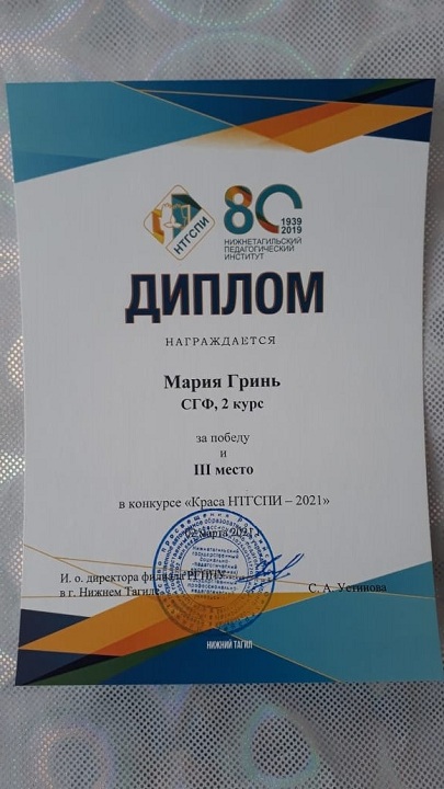 3 место и звание «Вице-мисс НТГСПИ – 2021» – студентка СГФ Мария Гринь;