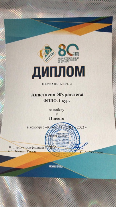 2 место и звание «Вице-мисс НТГСПИ – 2021» – студентка ФППО Анастасия Журавлева;