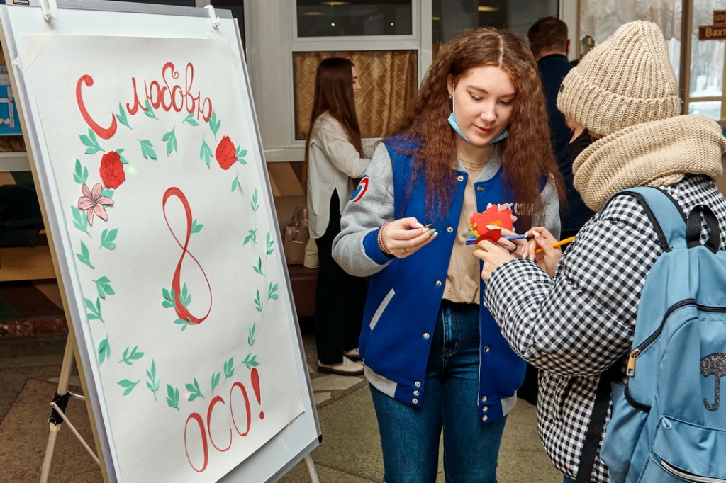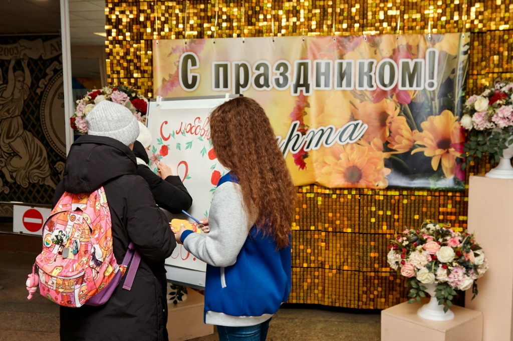 На конкурсе с творческими поздравлениями в преддверии международного женского дня выступали творческие коллективы института – Вокальная студия Натальи Скороходовой, танцевально-хореографический коллектив Театр спорта «Форсаж» (рук. – А. А. Мищенко), вокальная студия «Sunrise» (рук. – Л. А. Делидова, М. В. Котова, Е. А. Вейде).