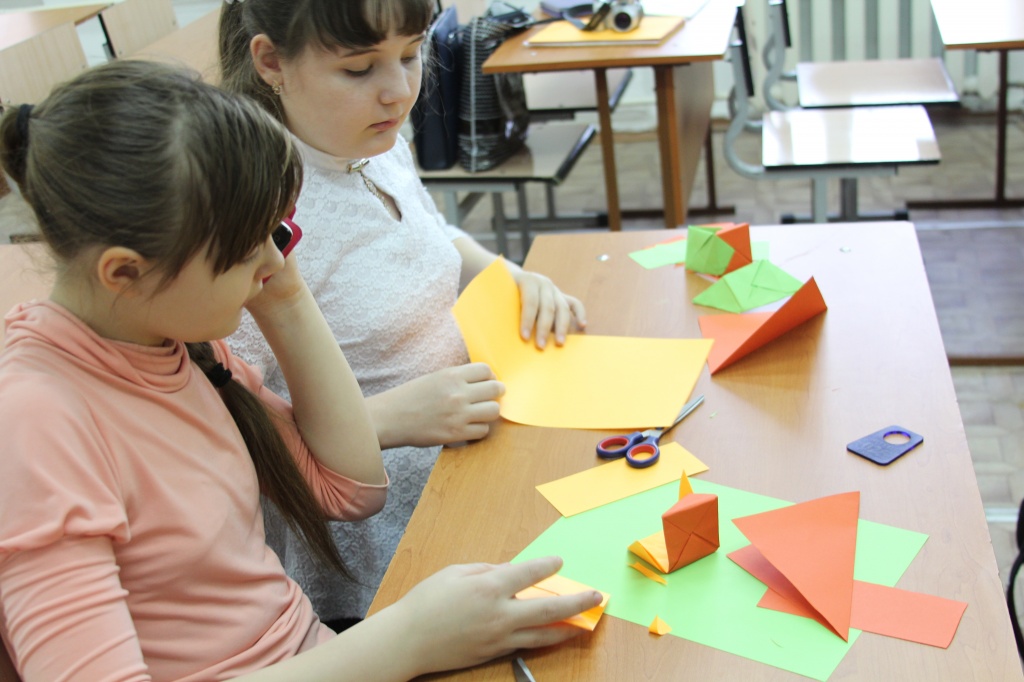На занятии учащиеся выполнили новогодний сувенир в технике оригами. Завершилась творческая встреча экскурсией по факультету художественного образования и сладкими сувенирами.
