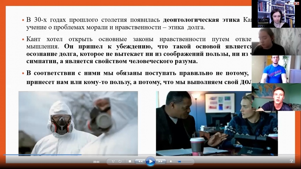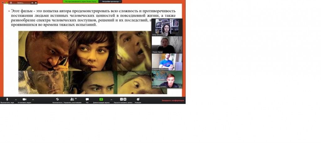 23 апреля прошло очередное заседание интеллектуального сообщества «Круг чтения». В дистанционном онлайн-формате Zoom студенты СГФ, ФППО и ФХО обсудили социальный и философский аспект фильма «Заражение» (2011 г.).