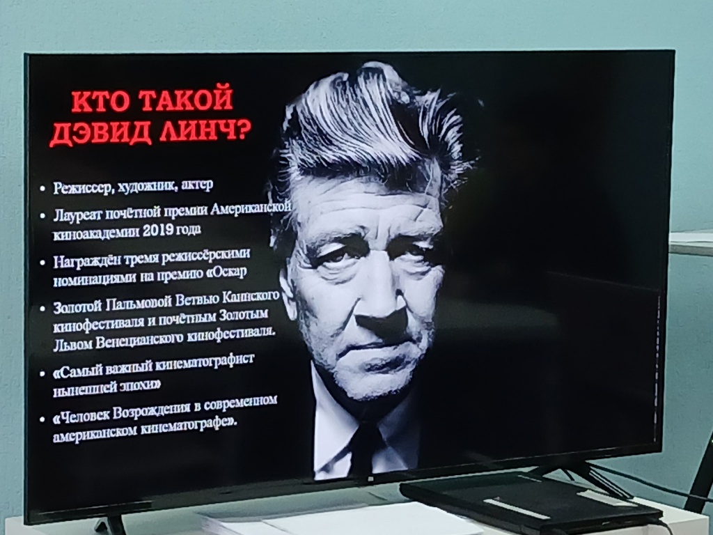 13 февраля состоялось внеочередное заседание киноклуба СГФ. В рамках обсуждения были рассмотрены основные работы режиссера Д. Линча, определены знаковые кинокартины. Особое внимание было уделено узнаваемому стилю произведений: нелинейности повествования, фрагментарности и намеренному нарушению логики, создающим атмосферу сновидения.