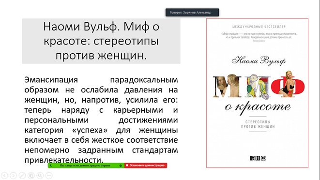 Студенты рассмотрели четыре волны феминизма; обсудили, как связан феминизм с частными вопросами равноправия; попытались выяснить, кто больше подвержен угнетению в современном мире – мужчины или женщины.
