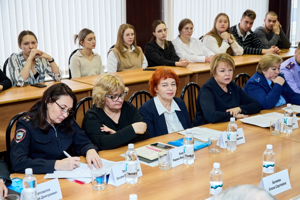 Во встрече приняли участие председатель комитета по социальной политике Законодательного собрания Свердловской области Вячеслав Викторович Погудин, первый заместитель министра социальной политики региона Евгений Дмитриевич Шаповалов, начальник отдела образования детей с особыми образовательными потребностями Министерства образования и молодежной политики Свердловской области Светлана Витальевна Блаженкова, заместитель начальника управления образования Нижнего Тагила Елена Сергеевна Беляева, заместитель начальника управления организации деятельности участковых уполномоченных полиции и подразделений по делам несовершеннолетних ГУ МВД по Свердловской области Оксана Владимировна Воробей, президент межрегиональной общественной организации по содействию семьям с детьми в трудной жизненной ситуации «Аистёнок» Лариса Владимировна Лазарева, директор Автономной некоммерческой организации социальной поддержки семей, детей и граждан, находящихся в трудной жизненной ситуации «Семья детям» Лариса Владимировна Бучельникова, главный специалист отдела организации медицинской помощи матерям и детям Министерства здравоохранения Свердловской области Ирина Александровна Литвищенко, начальник Управления социальной политики Министерства социальной политики № 21 Лариса Юрьевна Пануш, заместитель начальника Управления социальной политики Министерства социальной политики № 21 Елена Владимировна Орлова, судья судебного состава, специализирующегося на рассмотрении гражданских дел по спорам, возникающим из семейных правоотношений, включая споры о детях Судебной коллегии по гражданским делам Свердловского областного суда Ирина Сергеевна Скоринова, помощник прокурора Тагилстроевского района г. Нижнего Тагила Надежда Анатольевна Стафеева, руководитель следственного отдела по Тагилстроевскому району города Нижнего Тагила следственного управления Следственного комитета Российской Федерации по Свердловской области Денис Владимирович Черников, а также профессорско-преподавательский состав кафедры социальной работы, управления и права вместе со студентами направлений подготовки «Социальная работа» и «Психологическое консультирование и медиация в социальной сфере».