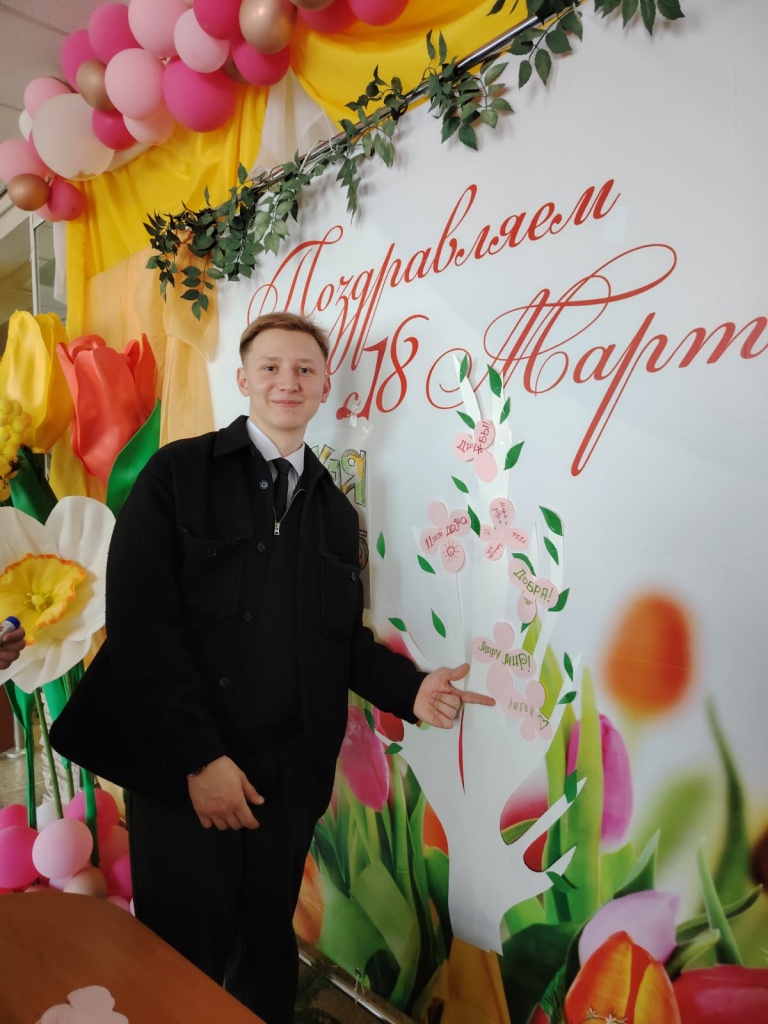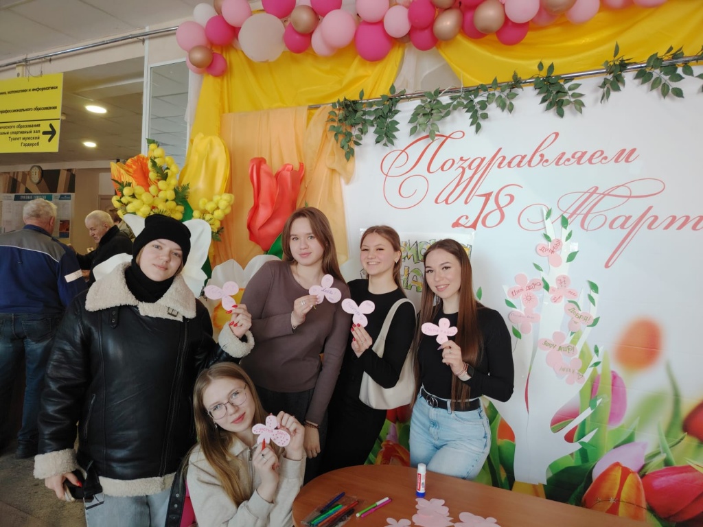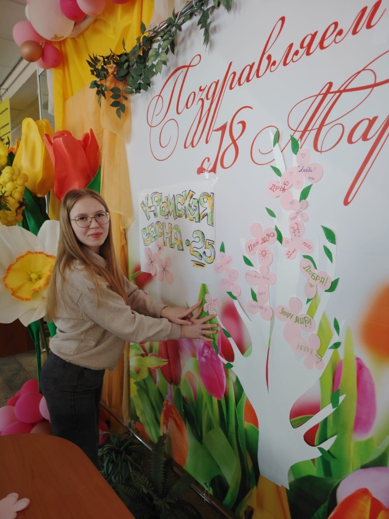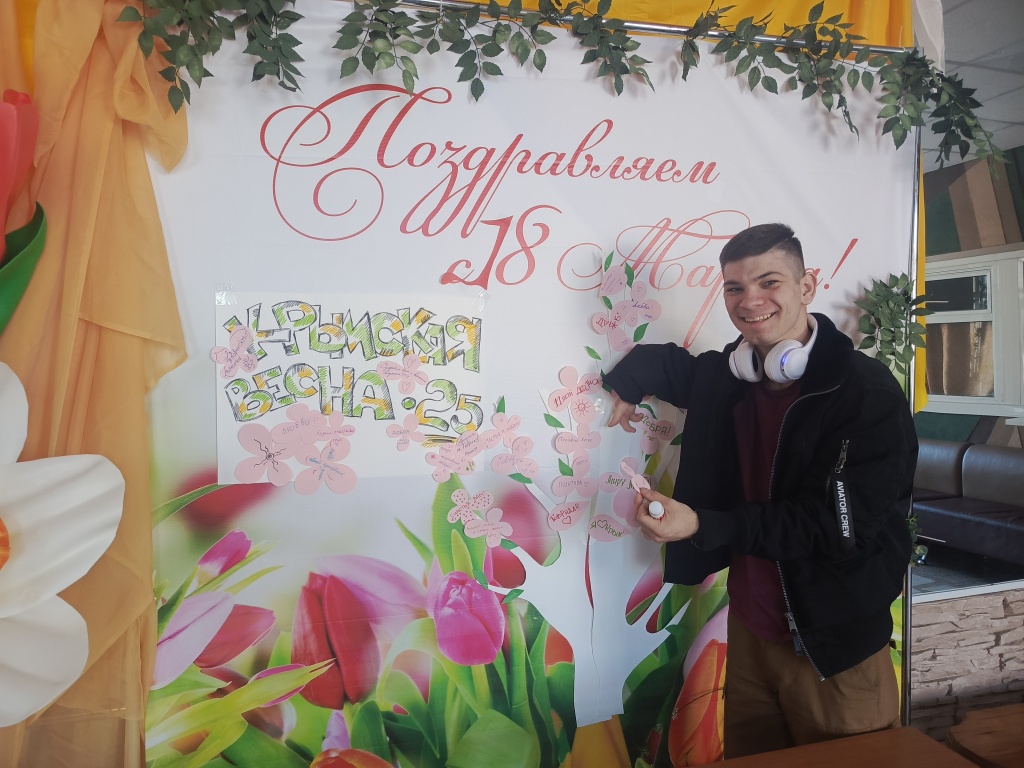 17 марта в память об этих событиях для всех обучающихся 1 курсов и СПО был проведен единый тематический классный час «Крымская весна – дорогами добра и мира!». Студенты посмотрели видеоматериалы о том, как за 11 лет преобразился Крым и Севастополь, как изменилась инфраструктура полуострова. Сегодня Крым – это сказочная здравница, культурный и исторический бриллиант Родины. Студенты-волонтеры ЦРМИ «Добро ЦЕНТР» организовали праздничную акцию «Крымская весна – дорогами добра и мира!». В холле 1 этажа института под весенние молодежные песни они помогли распуститься крымскому цветочному букету добра!