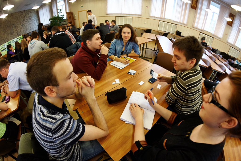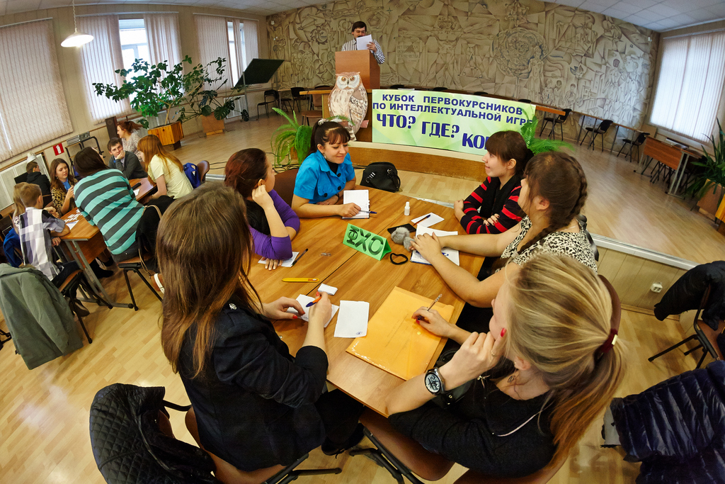 Команда факультета филологии и массовых коммуникаций, занявшая первое место, отправляется защищать честь академии на городские встречи по интеллектуальной игре «Что? Где? Когда?» среди первокурсников нашего города.