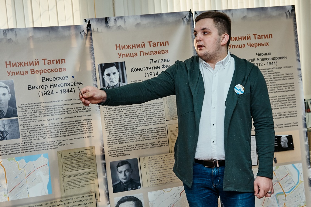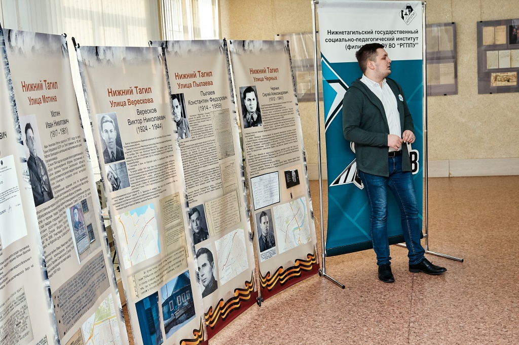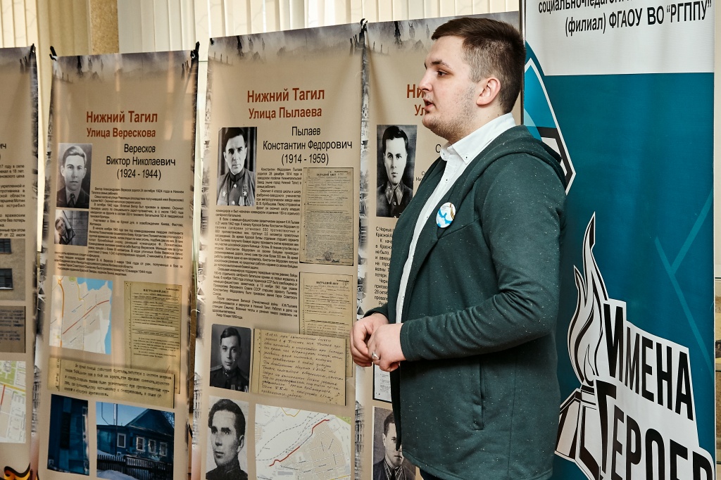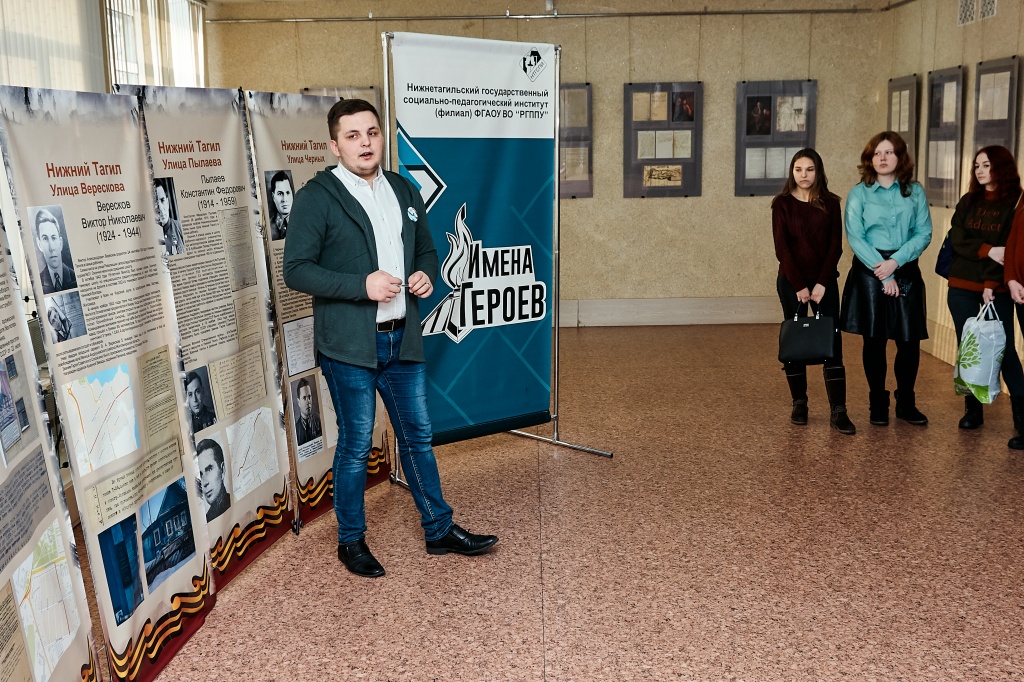 20 февраля в рамках мероприятий, посвящённых Дню Защитника Отечества, руководителем Центра гражданско-патриотического воспитания студентов «Имена Героев» Сергеем Намятовым при поддержке Управления воспитательной работы была проведена серия экскурсий по экспозиции, посвящённой Героям Советского Союза, чьи имена увековечены в названиях улиц Нижнего Тагила.